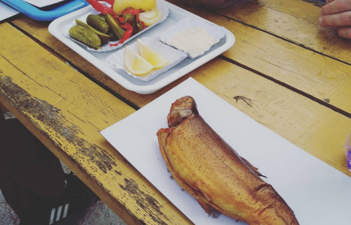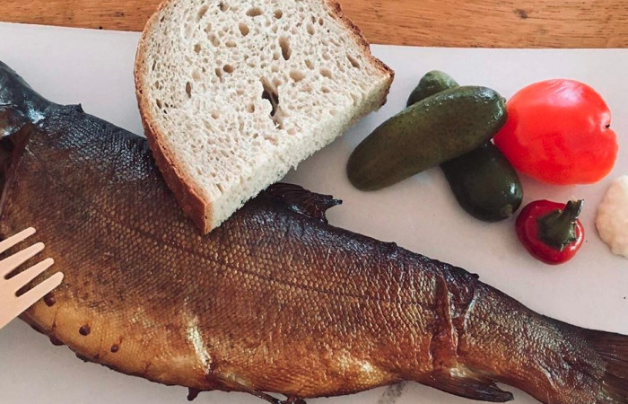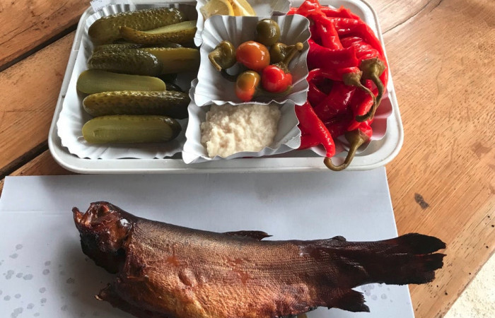 Pripravujeme pečeno-údeného pstruha z vlastnej produkcie. Recept ale neprezrádzame, je to naše "know-how". Rýchlosoľ nepoužívame a samotné údenie trvá len pár minút, preto o jej kvalite nemusíte pochybovať.