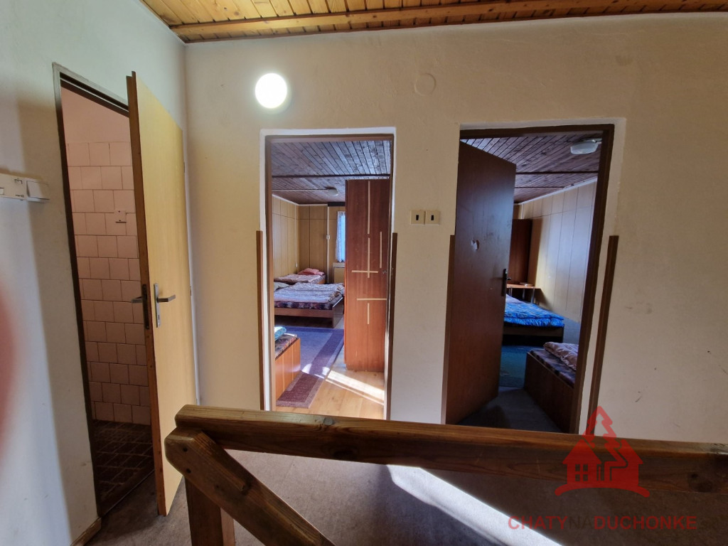 V tesnej blízkosti vodnej nádrže DUCHONKA je na predaj poschodová chata. Chata má 4 izby, 2 kúpeľne s wc a priestrannú kuchyňu so sedením. V prízemnej obytnej časti chaty vstúpime do chodby, z ktorej sa ide do kuchyne spojenej s obývacou časťou chaty. V prízemnej časti je ešte 1 samostatná izba. Z chodby je vstup do kúpeľne s wc a tiež schodisko idúce na 1. poschodie. Na prvom poschodí sú 2 veľké izby a tiež kúpeľňa s wc. Chata má celkom 12 postelí. Chata je napojená na verejný rozvod elektriky, vody a odpad je riešený vo forme žumpy. Ohrev vody zabezpečuje elektrický zásobníkový ohrievač vody, kúrenie je lokálne elektrické. Stavba je v prízemnej časti murovaná a 2/3 z 1. poschodia je montovaná (obvodový plášť). Prístupová cesta je štrková. Predajom je chata ihneď voľná. Chata bola postavená v 80-tych rokoch. Zastavaná plocha chaty je 65 m2, úžitková a obytná plocha je 120 m2, pozemok má výmeru 412 m2. Vrelo odporúčam, krásne prostredie, tichá lokalita a predajom je chata ihneď k dispozícii. Kľúče od chaty mám. V cene je zahrnutý kompletný právny servis, vypracovanie návrhu na vklad do katastra nehnuteľností a poradenstvo v oblasti hypotekárneho financovania a poistenia. Sme členom NARKS. Obhliadku dohodne: Boris HANKO, tel. 0915 702 177 ----Virtuálna obhliadka: https://tour.panoee.com/chata-6