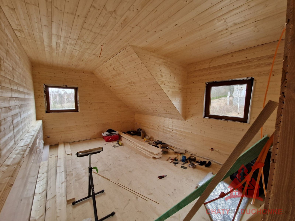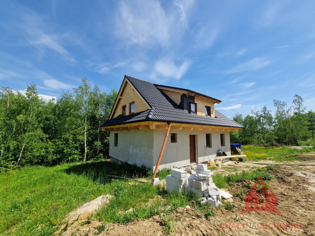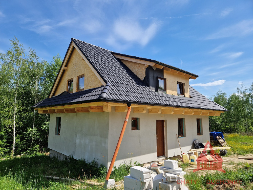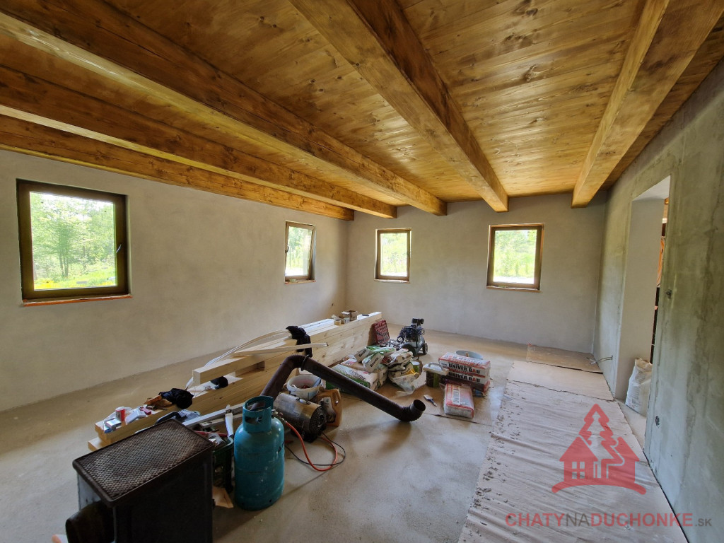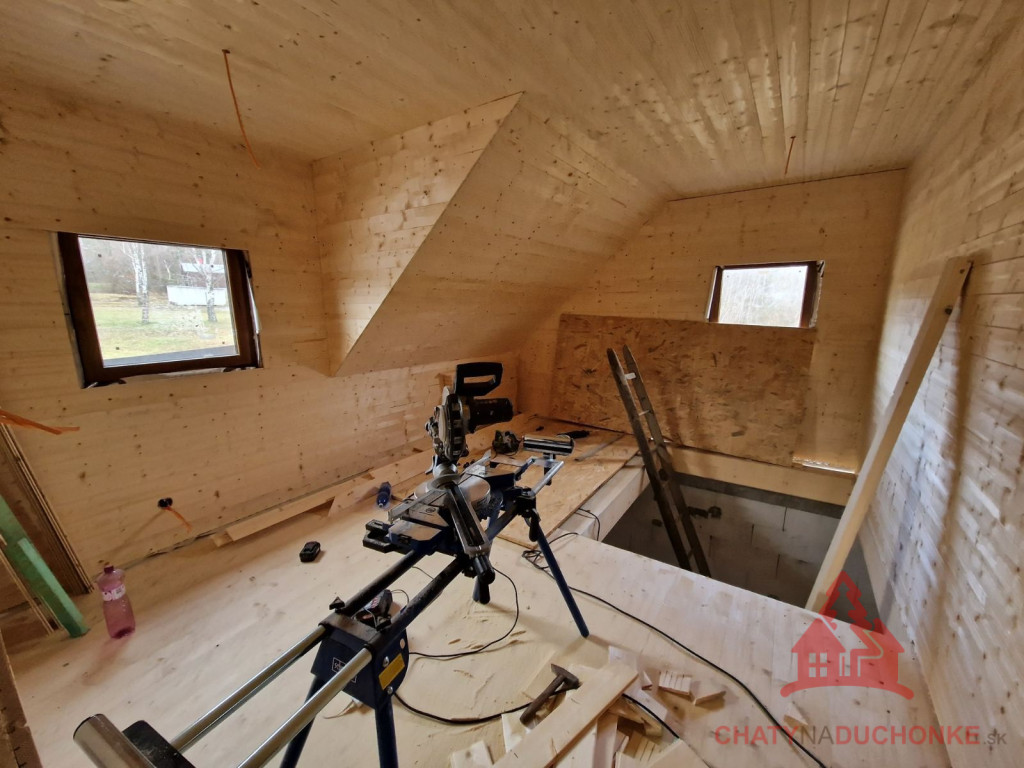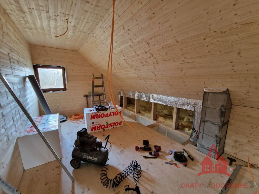 V rekreačnej oblasti DUCHONKA (okres Topoľčany) ponúkame na predaj 3 novostavby, ktoré sú toho času vo výstavbe. Keďže sú vo výstavbe, tak je možné v tejto chvíli ešte dolaďovať konečnú podobu a výbavu chaty. Chaty majú rovnaký projekt a dispozícia chaty je následovná. V suteréne chaty sa ráta s veľkým otvoreným priestorom, kde bude spoločenská miestnosť – obývačka, ktorá bude prepojená s kuchyňou. Na prízemí bude kúpeľňa so sprchovacím kútom, wc a umývadlom. V podkrovnej časti chaty budú 3 alebo 4 izby a samostatné wc. Stavby budú štandardne napojené na elektriku, miestny vodovod a odpad bude vo forme žumpy. Okná sú plastové, budú zateplené polystyrénom, strešná krytina je škridla. Chaty sú nateraz predávané ako holodomy, t.j. Podlahy, obklady, dlažby, sanita, krbové kachle sú v cene (individuálne je možnosť inej formy kúrenia, el. ústredné podlahové či radiátorové a samozrejme tiež meniť aktuálne dispozičné riešenie chaty, ako aj farebné prevedenie). V cene nie je zahrnutá kuchynská linka so spotrebičmi a vonkajšie terénne úpravy. Výmera pozemkov 378 m2, 398 m2 a 496 m2. Zastavaná plocha chaty je 9,7 x 7,2m = 70 m2 a čistá obytná plocha chaty je 120 m2. Mám kľúč od nehnuteľnosti.