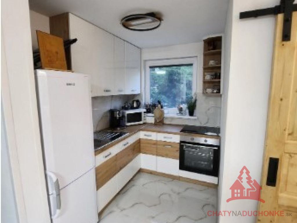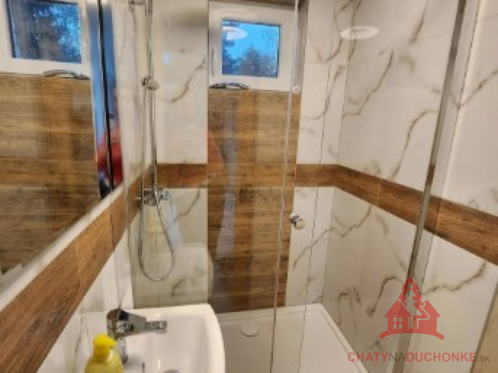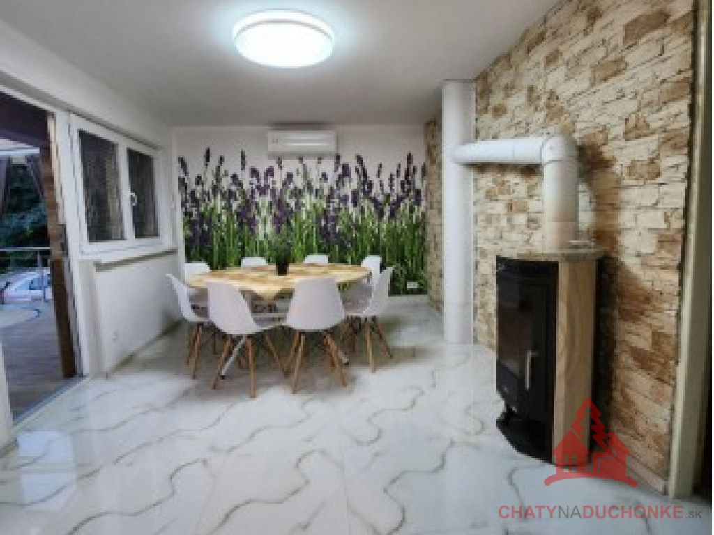 V peknej prírodnej rekreačnej lokalite DUCHONKA, ponúkame na predaj veľmi peknú – exkluzívnu celoročnú chatu, ktorá vie ponúknuť pohodu počas celého roka. Chata je po kompletnej rekonštrukcii, ktorá prebehla v roku 2024. Vybavenie a zariadenie chaty: 3x spálňa, 2x spoločenská miestnosť (obývačky), počet postelí je 12 + 2 prístelky, plne zariadená kuchyňa spotrebičmi (vstavaná varná doska + rúra, chladnička), 2x kúpeľňa s wc, krbové kachle, vírivka s kúrením na drevo, 2x terasa, garáž – technická miestnosť, sauna, el. bojler na ohrev vody, vonkajšie atrakcie mrkni na foto, vlastná výroba elektriky – fotovoltika (5 kWp), klimatizácia, wifi, 5x parkovacie miesto a mnoho ďalšieho. Takže sumár: pohoda ako vyšitá už len nohy vyložiť na terase, otvoriť fajn nápoj omamný a naštartovať gril a niečo dobré si upiecť. A decká šup nechať sa blázniť. Chata je vhodná aj na trvalé bývanie. Nehnuteľnosť sa predáva komplet zariadená a s vybavením ako je na foto. Zastavaná plocha 80 m2, výmera pozemku 658 m2, obytná plocha 150 m2, úžitková plocha 200 m2. Chata sa aktuálne využíva na prenájom a má už nejaké termíny obsadené, čo je pre záujemcov o investovanie a prevádzkovanie chaty na prenájom veľká výhoda. Vrelo odporúčam, krásne prostredie, ešte krajšia chata a predajom je chata ihneď k dispozícii. Obhliadku dohodne: Boris HANKO, tel. 0915 702 177