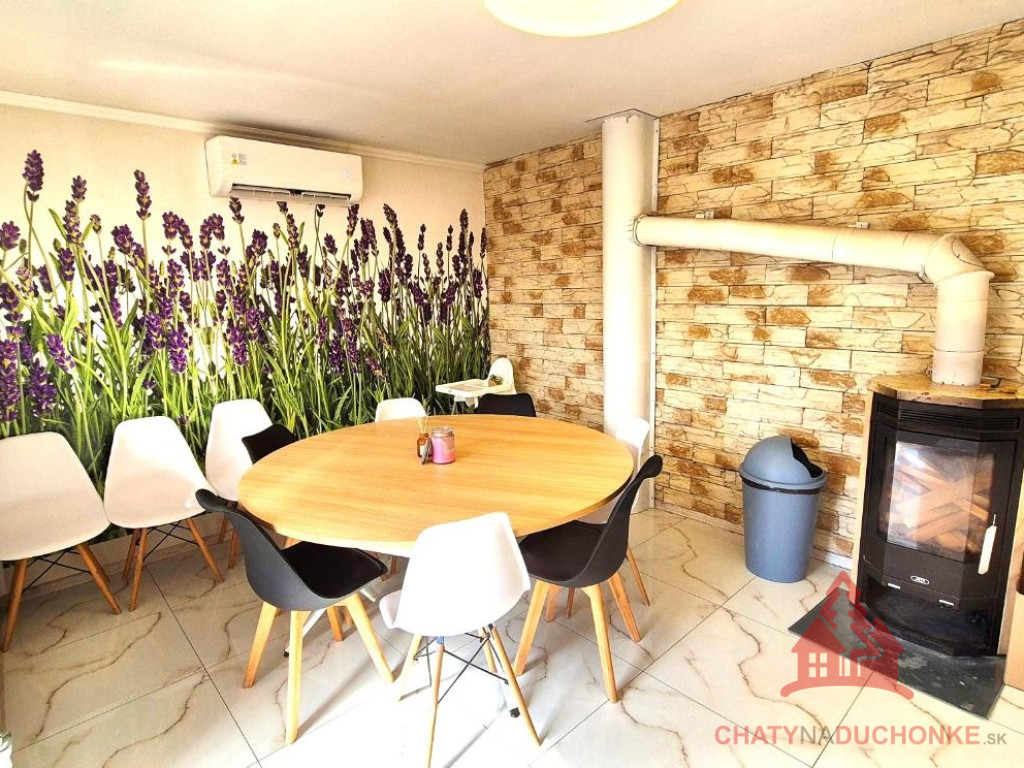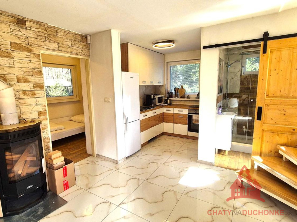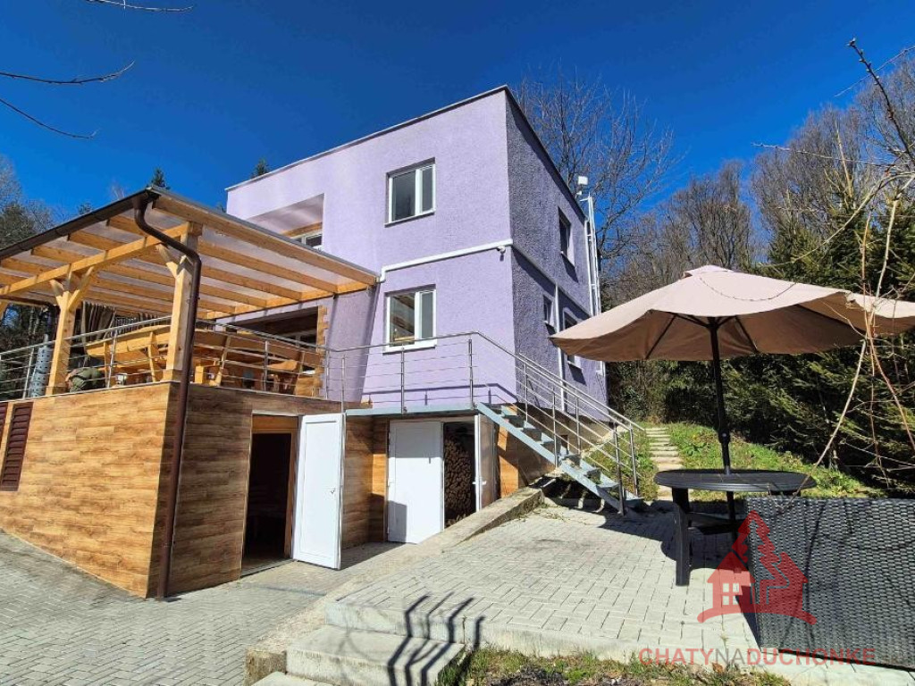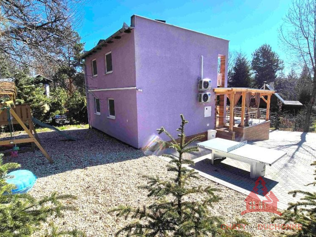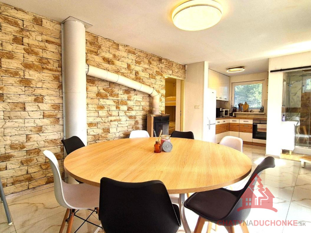 V peknej prírodnej rekreačnej lokalite DUCHONKA, ponúkame na predaj veľmi peknú – exkluzívnu celoročnú chatu, ktorá vie ponúknuť pohodu počas celého roka. Chata je po kompletnej rekonštrukcii, ktorá prebehla v roku 2024. Vybavenie a zariadenie chaty: 3x spálňa, 2x spoločenská miestnosť (obývačky), počet postelí je 12 + 2 prístelky, plne zariadená kuchyňa spotrebičmi (vstavaná varná doska + rúra, chladnička), 2x kúpeľňa s wc, krbové kachle, vírivka s kúrením na drevo, 2x terasa, garáž – technická miestnosť, sauna, el. bojler na ohrev vody, vonkajšie atrakcie mrkni na foto, vlastná výroba elektriky – fotovoltika (5 kWp), klimatizácia, wifi, 5x parkovacie miesto a mnoho ďalšieho. Takže sumár: pohoda ako vyšitá už len nohy vyložiť na terase, otvoriť fajn nápoj omamný a naštartovať gril a niečo dobré si upiecť. A decká šup nechať sa blázniť. Chata je vhodná aj na trvalé bývanie. Nehnuteľnosť sa predáva komplet zariadená a s vybavením ako je na foto. Zastavaná plocha 80 m2, výmera pozemku 658 m2, obytná plocha 150 m2, úžitková plocha 200 m2. Chata sa aktuálne využíva na prenájom a má už nejaké termíny obsadené, čo je pre záujemcov o investovanie a prevádzkovanie chaty na prenájom veľká výhoda. Vrelo odporúčam, krásne prostredie, ešte krajšia chata a predajom je chata ihneď k dispozícii. Obhliadku dohodne: Boris HANKO, tel. 0915 702 177