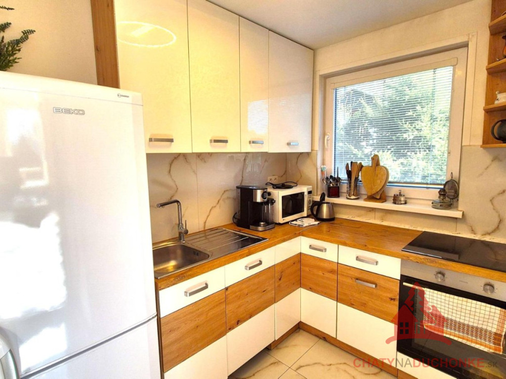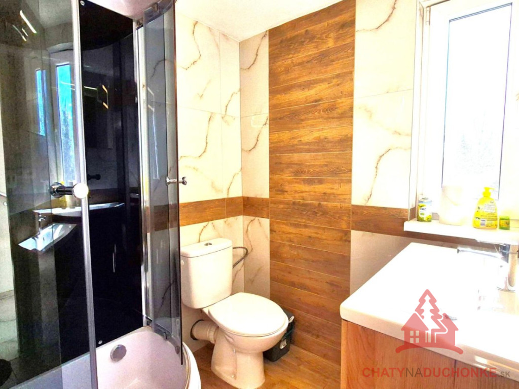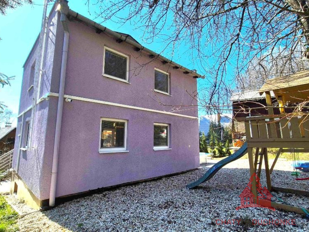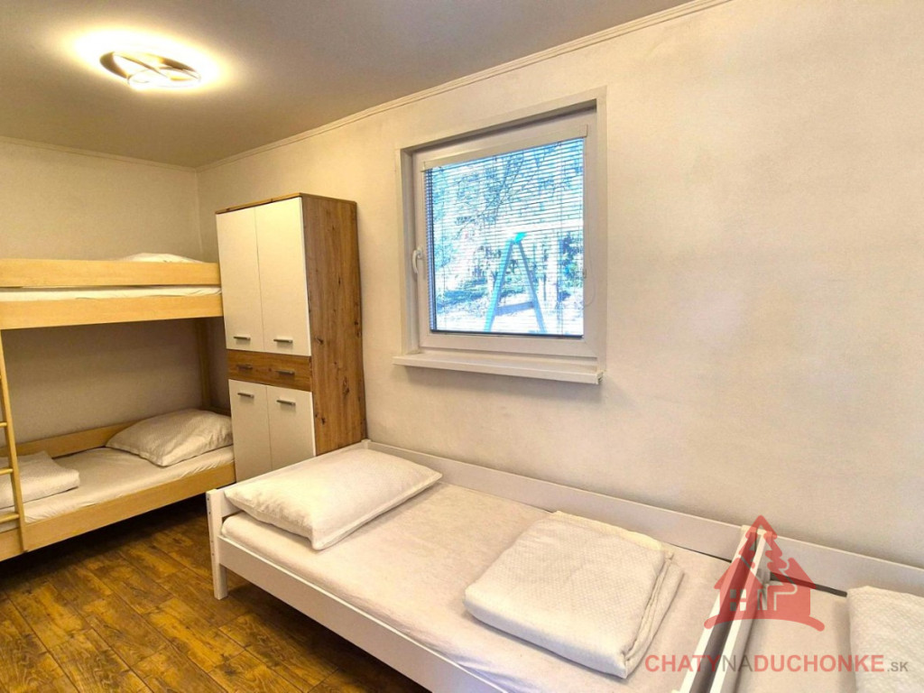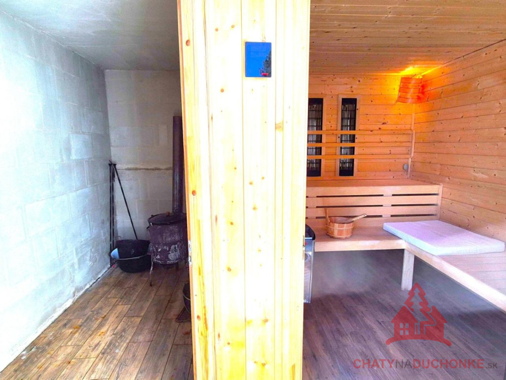 V peknej prírodnej rekreačnej lokalite DUCHONKA, ponúkame na predaj veľmi peknú – exkluzívnu celoročnú chatu, ktorá vie ponúknuť pohodu počas celého roka. Chata je po kompletnej rekonštrukcii, ktorá prebehla v roku 2024. Vybavenie a zariadenie chaty: 3x spálňa, 2x spoločenská miestnosť (obývačky), počet postelí je 12 + 2 prístelky, plne zariadená kuchyňa spotrebičmi (vstavaná varná doska + rúra, chladnička), 2x kúpeľňa s wc, krbové kachle, vírivka s kúrením na drevo, 2x terasa, garáž – technická miestnosť, sauna, el. bojler na ohrev vody, vonkajšie atrakcie mrkni na foto, vlastná výroba elektriky – fotovoltika (5 kWp), klimatizácia, wifi, 5x parkovacie miesto a mnoho ďalšieho. Takže sumár: pohoda ako vyšitá už len nohy vyložiť na terase, otvoriť fajn nápoj omamný a naštartovať gril a niečo dobré si upiecť. A decká šup nechať sa blázniť. Chata je vhodná aj na trvalé bývanie. Nehnuteľnosť sa predáva komplet zariadená a s vybavením ako je na foto. Zastavaná plocha 80 m2, výmera pozemku 658 m2, obytná plocha 150 m2, úžitková plocha 200 m2. Chata sa aktuálne využíva na prenájom a má už nejaké termíny obsadené, čo je pre záujemcov o investovanie a prevádzkovanie chaty na prenájom veľká výhoda. Vrelo odporúčam, krásne prostredie, ešte krajšia chata a predajom je chata ihneď k dispozícii. Obhliadku dohodne: Boris HANKO, tel. 0915 702 177