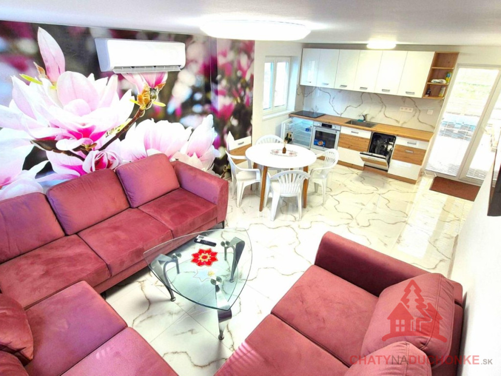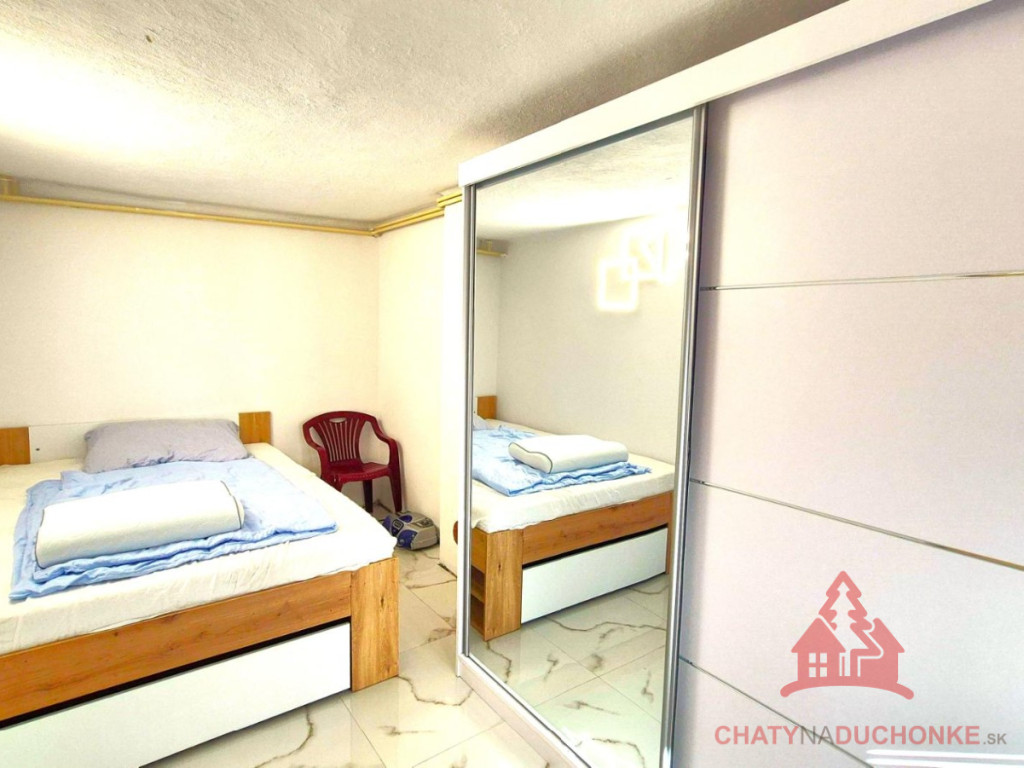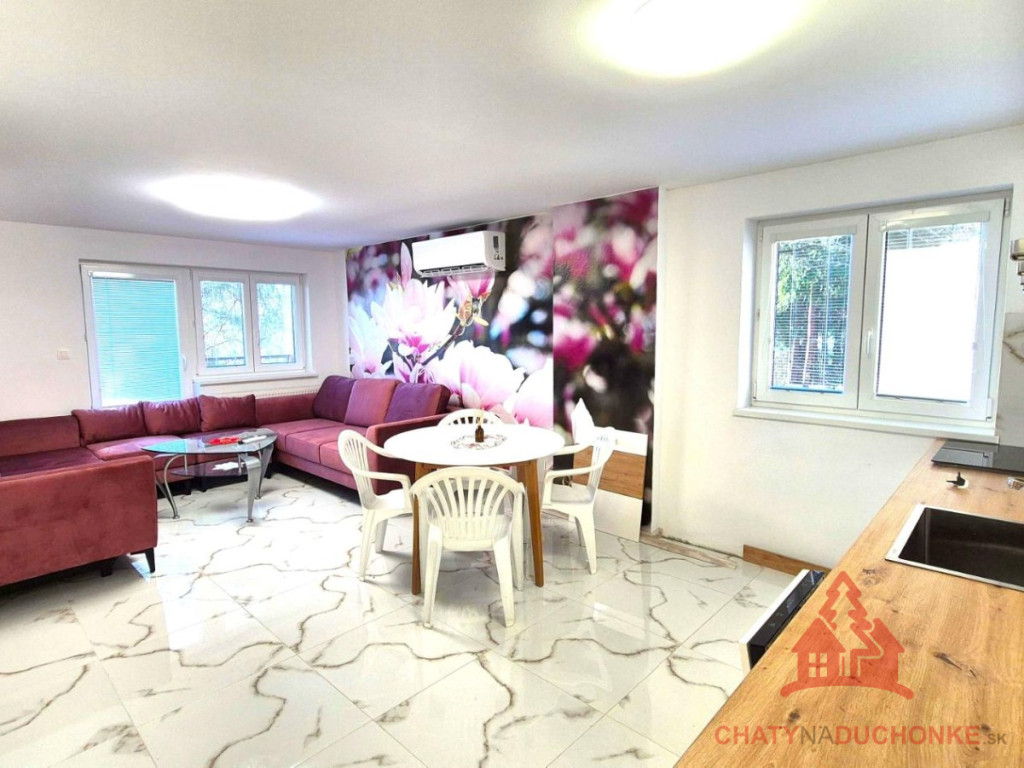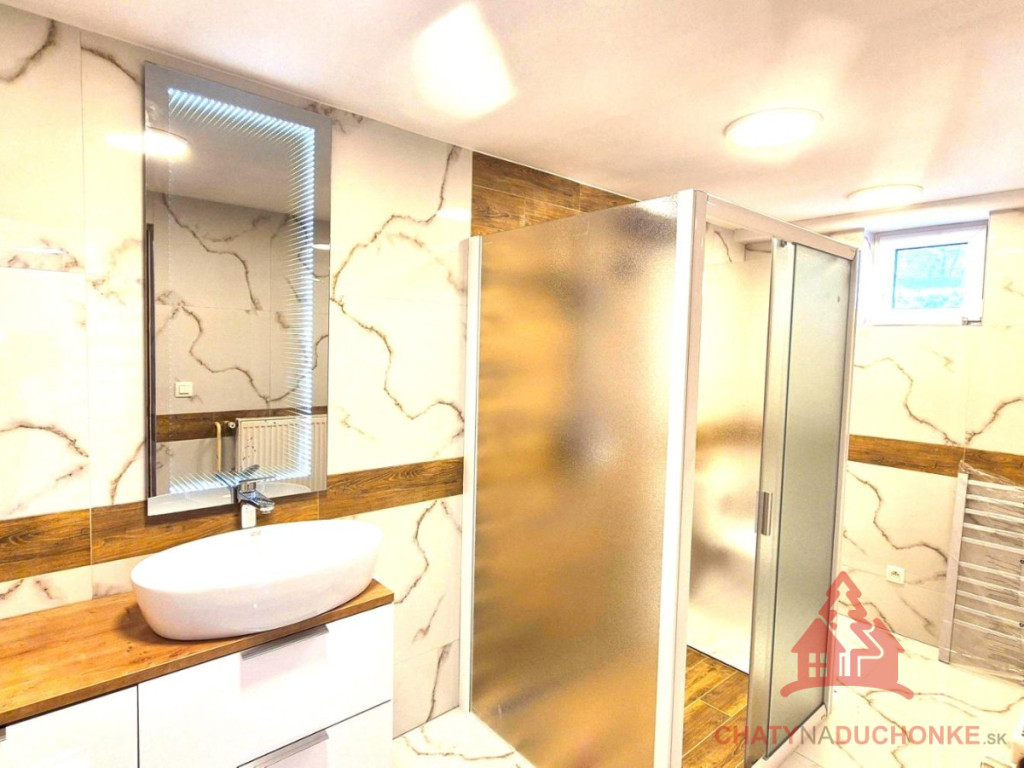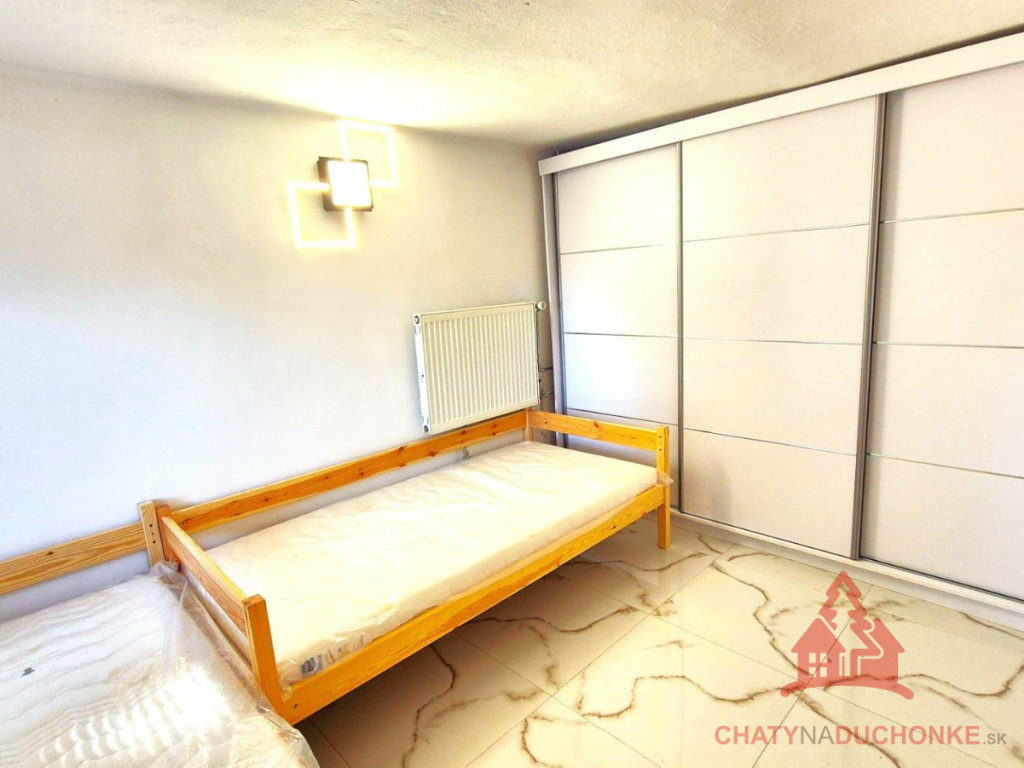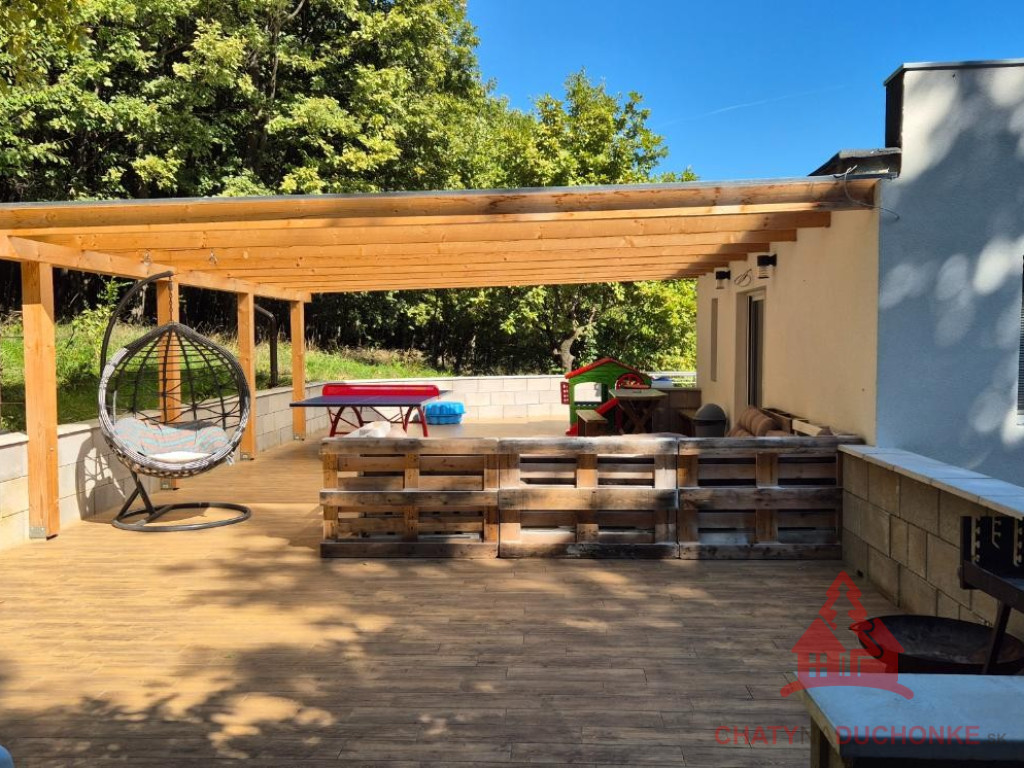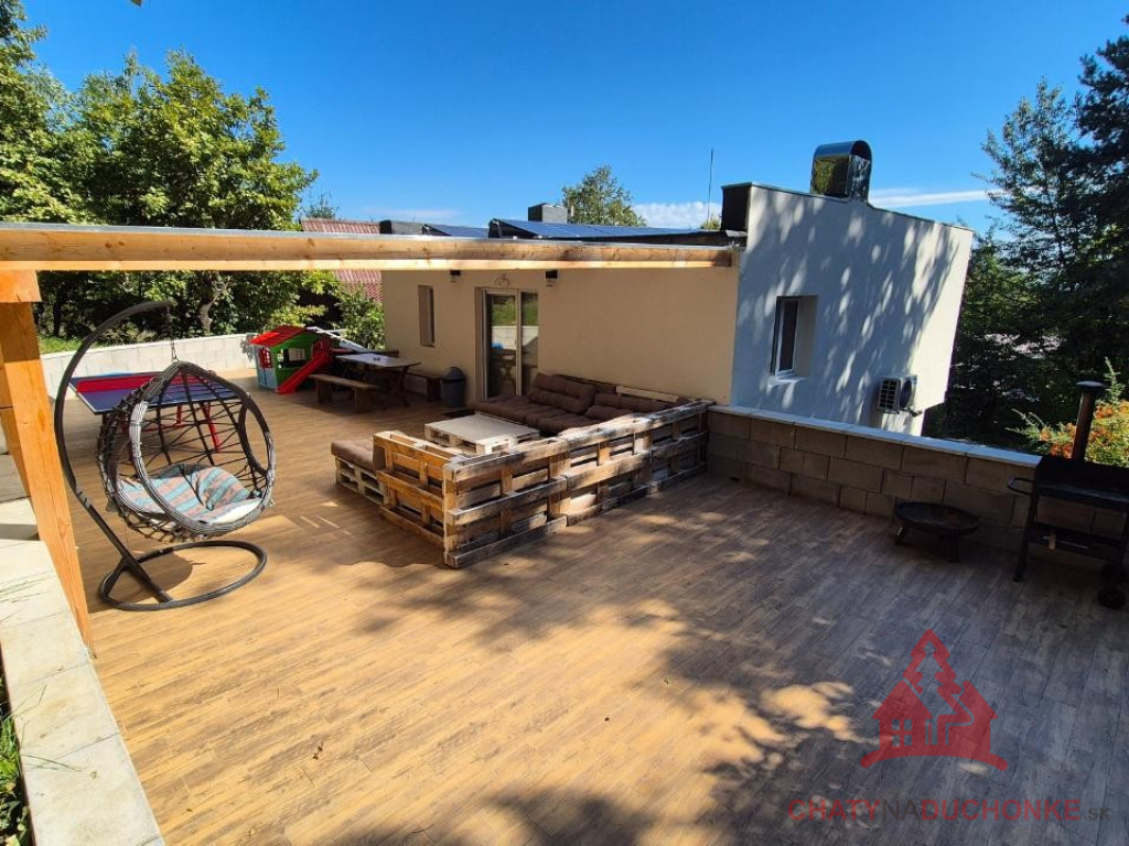 V peknej prírodnej rekreačnej lokalite DUCHONKA, ponúkame na predaj veľmi peknú – famóznu celoročnú chatu s ústredným kúrením, ktorá vie ponúknuť pohodu počas celého roka. Chata je po kompletnej rekonštrukcii, ktorá prebehla v roku 2024. Vybavenie a zariadenie chaty: 3x spálňa, 1x spoločenská miestnosť (obývačka), počet postelí je 6 + 3 prístelky, plne zariadená kuchyňa spotrebičmi (umývačka riadu, vstavaná varná doska + chladnička), 2x kúpeľňa s wc, kotol ústredného kúrenia na tuhé palivo, veľká mega maxi terasa, kde môžete aj svadbu spraviť, technická miestnosť, el. bojler na ohrev vody (napojený na FVE), vlastná výroba elektriky – fotovoltika (FVE - výkon 5 kWp), wifi, 5x parkovacie miesto a mnoho ďalšieho. V Čase samotného predaja bude nehnuteľnosť zateplená polystyrénovým zatepľovacím systémom. Takže sumár: chata je situovaná pod lesom, kde som sem tam porelaxoval a môžem povedať, že je parádna. Kľud pohoda ako vyšitá už len nohy vyložiť na terase, otvoriť fajn nápoj omamný a naštartovať gril a niečo dobré si upiecť. Hríby sú v lese v papučach ich budete zbierať a v pyžame na nedeľné raňajky. Chata je vhodná aj na trvalé bývanie. Nehnuteľnosť sa predáva komplet zariadená a s vybavením ako je na foto. Zastavaná plocha 62 m2, výmera pozemku 381 m2, obytná plocha 100 m2, úžitková plocha 200 m2. Vrelo odporúčam, krásne prostredie, ešte krajšia chata a predajom je chata ihneď k dispozícii. Obhliadku dohodne: Boris HANKO, tel. 0915 702 177