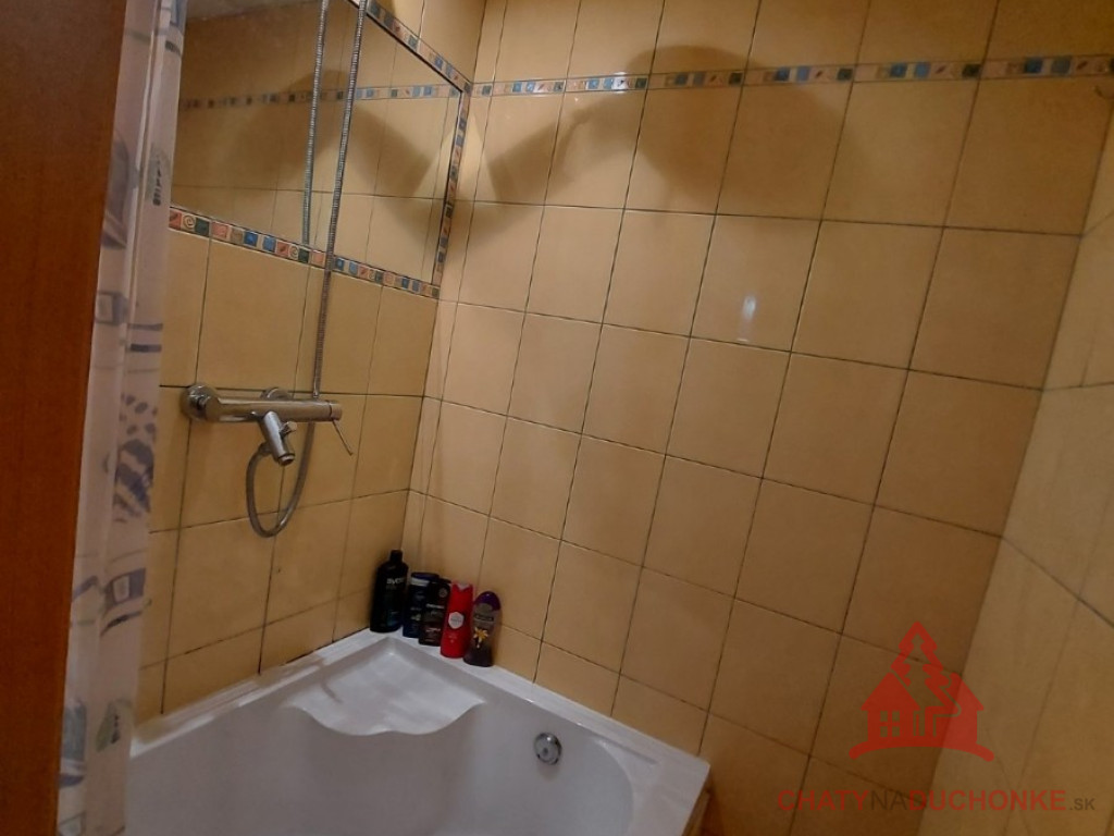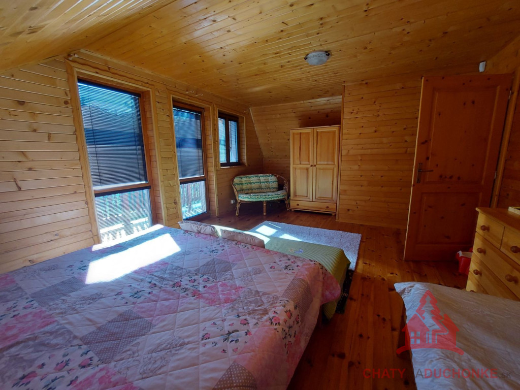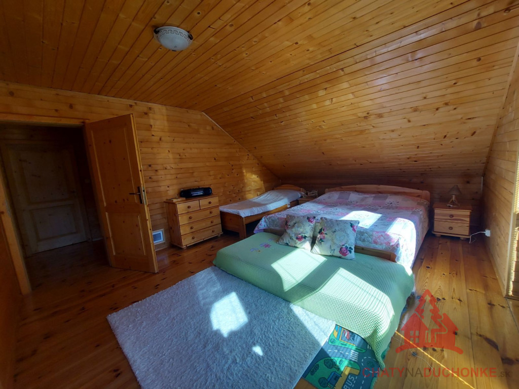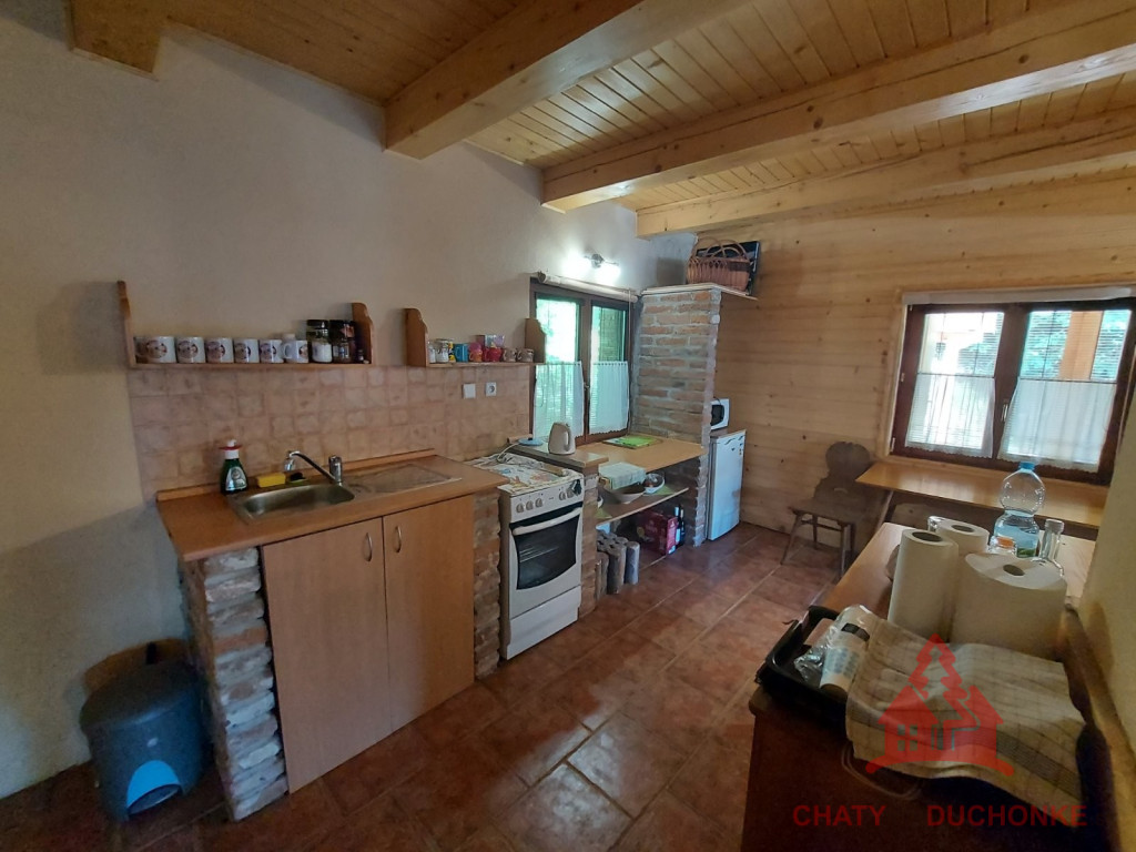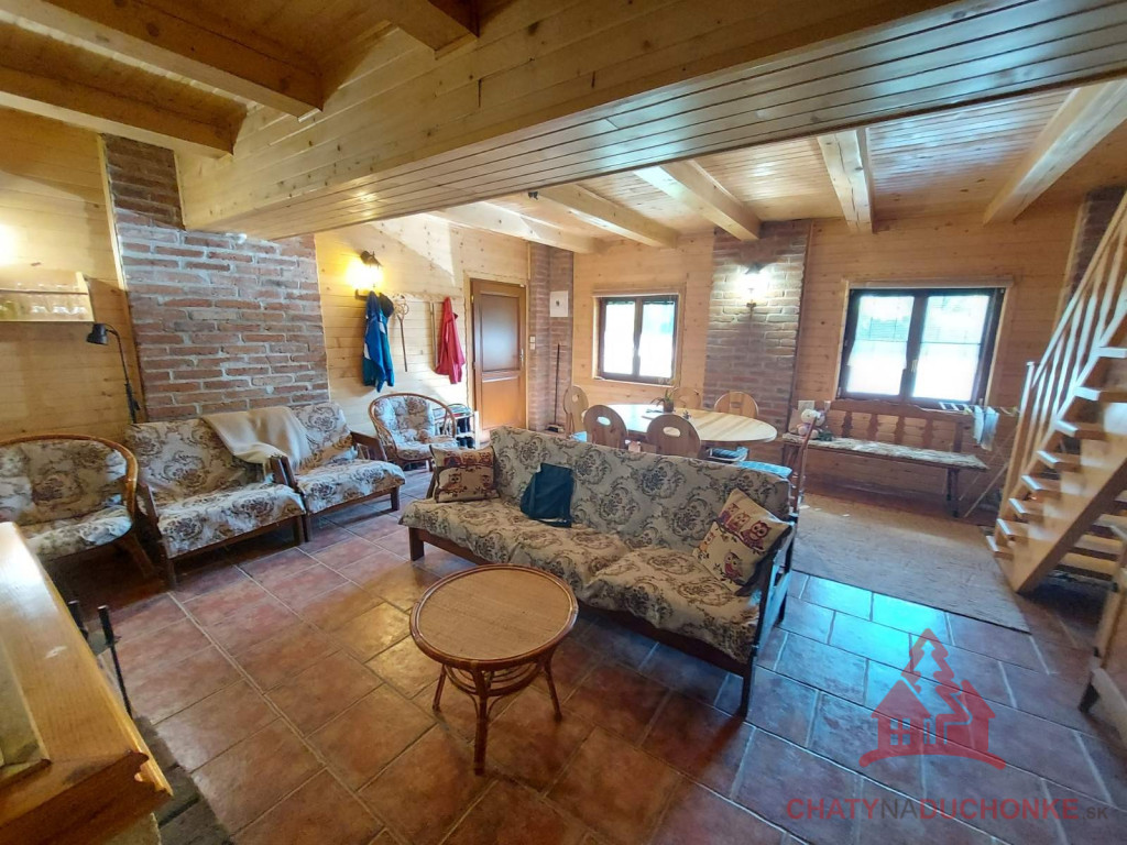 V rekreačnej oblasti DUCHONKA ponúkame na predaj parádne peknú slnečnú zariadenú chatu novostavbu, postavenú v roku 2012. Chata je 2 - podlažná a v prízemnej časti je 1 izba (spoločenská miestnosť), ktorej dominuje veľký krb s prieduchmi. Táto miestnosť je zároveň spojená s kuchyňou. V tejto časti chaty je aj samostatné wc a samostatná kúpeľňa. Na 1. poschodí sú 2 priestranné izby, v ktorých je spolu 10 postelí (6 + 4). Stavba je napojená na vodovod, ohrev vody zabezpečuje elektrický bojler a odpad je zvedený do žumpy. Strešná krytina je plechoškridla, stavebný materiál YTONG a stavba je aj zateplená 10 cm polystyrénom. Chata má krásne drevené podhľady. Z bezpečnostných prvkov má chata kamerový systém, alarm a požiarny hlásič. Na streche je satelit a pohoda ako vyšitá, už len nohy vyložiť na terase naštartovať gril a niečo dobré si upiecť. Nehnuteľnosť sa predáva komplet zariadená aj s vybavením ako je na foto. Pozemok okolo chaty je veľmi pekný. Nájdeme tam prestrešenú terasu a technickú miestnosť na odkladanie náradia a iných vecí potrebných na chate. Zastavaná plocha chaty je 58 m2, obytná plocha 80 m2, úžitková plocha je cca 100 m2, terasa 20 m2 a výmera pozemku 473 m2. Pozemok je vysporiadaný. Vrelo doporučujem, krásne prostredie, ešte krajšia chata, tichá lokalita a predajom je chata ihneď k dispozícii. V cene je zahrnutý - kompletný právny servis - vypracovanie Kúpnych, nájomných a iných typov zmlúv - právne poradenstvo - popredajný servis / zmeny u dodávateľov elektriky, plynu a vody/ a samozrejme bezplatné poradenstvo pri vybavovaní hypoúveru. Sme členom NARKS. Obhliadku dohodne: Boris HANKO, tel. 0915 702 177