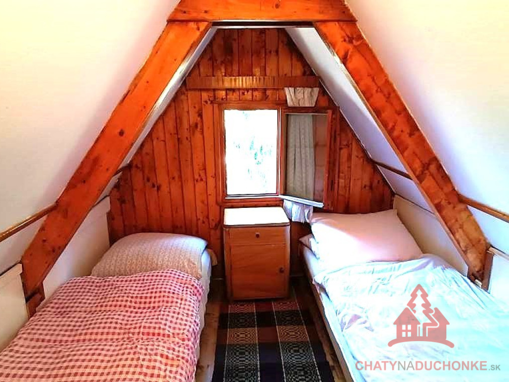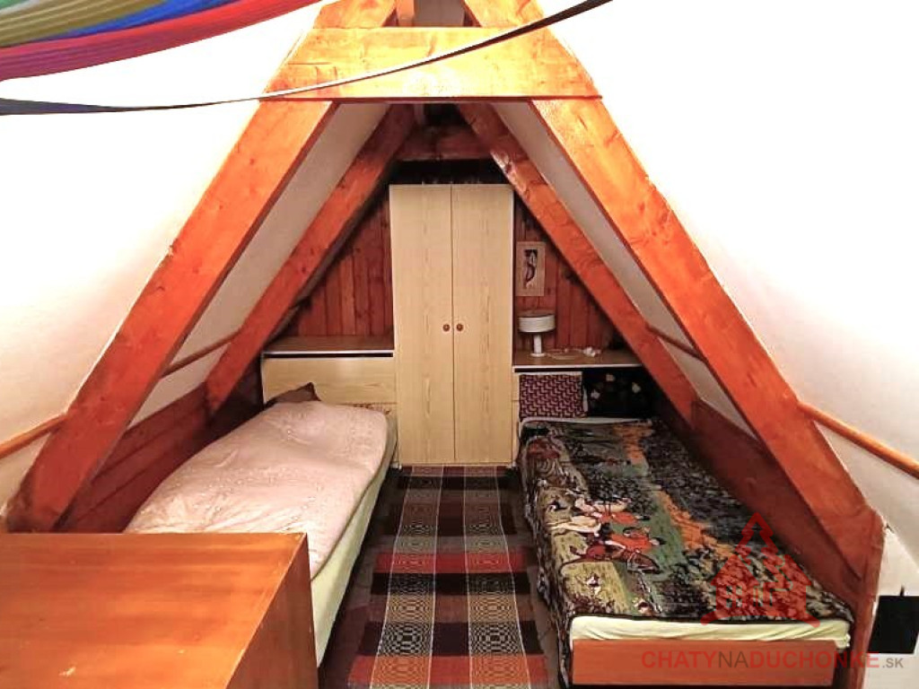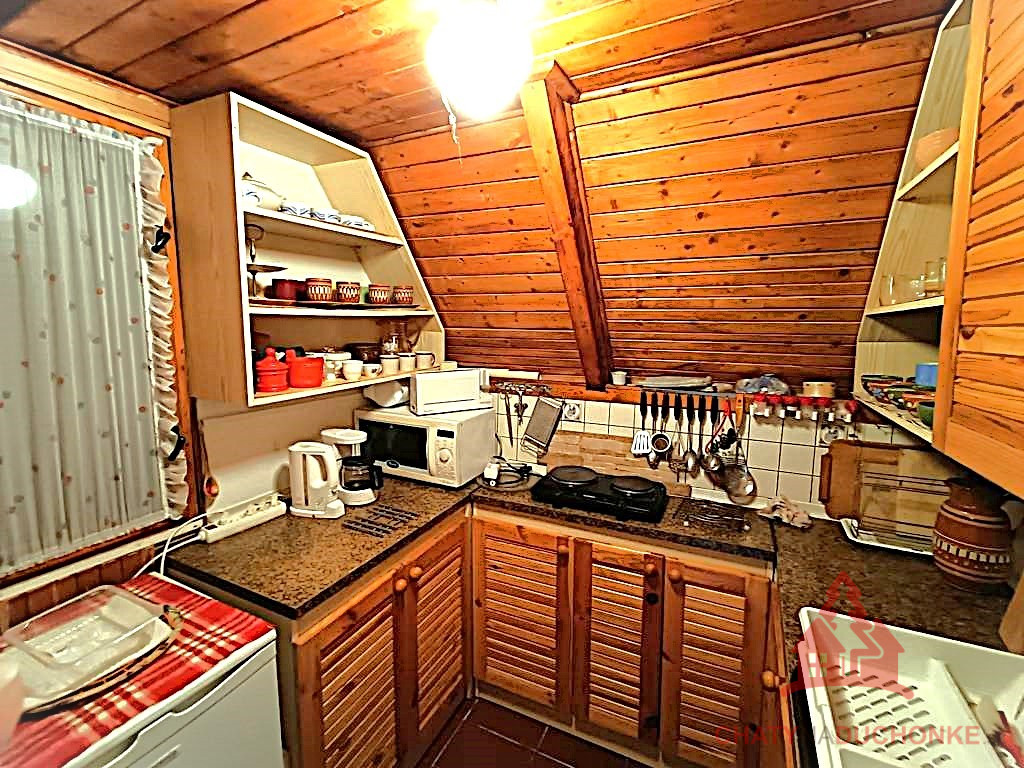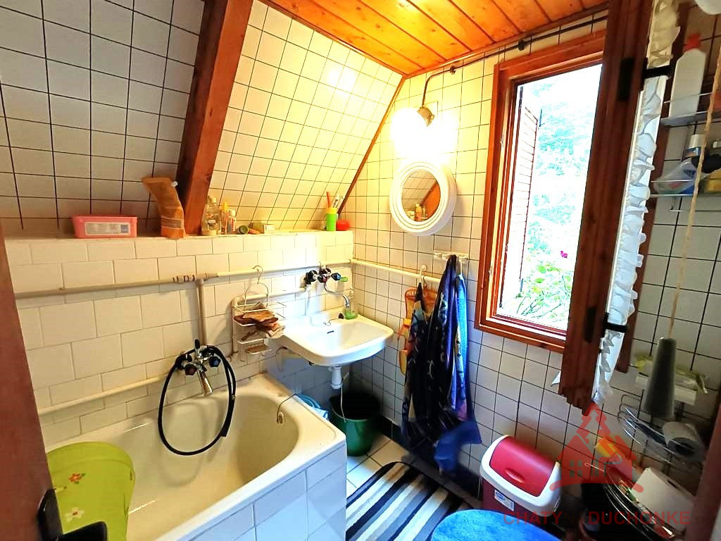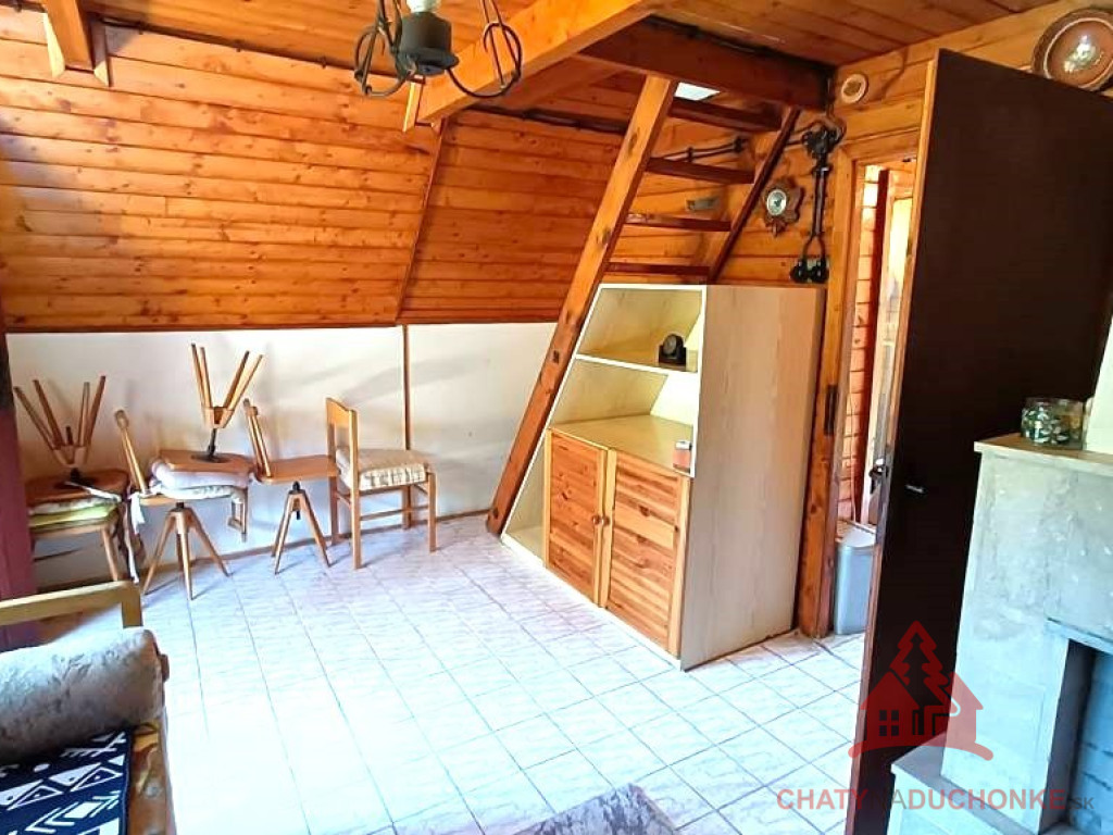 V blízkosti priehrady DUCHONKA je na predaj pekne schovaná chata. Drevená chata má v prízemnej časti chodbu, kuchynku, obývačku, kúpeľňu s wc a terasový balkón. Na poschodí je izba predelená na 2 so 4 lôžkami. V suteréne je pivničný priestor. Pri chate je ohnisko a odkladací priestor na drevo. Ohrev vody rieši el. zásobníkový ohrievač vody a teplo v chate je cez krb príp. kachle (peterky) na tuhé palivo. Vybavenie chaty ako ho vidíte na foto zostáva v chate. Zastavaná plocha chaty je 43 m2, úžitková plocha je cca 70 m2. Pozemok je veľmi pekný a upravený a v užívaní je cca 300 m2. Vrelo odporúčam, krásne prostredie, super chata, tichá lokalita a predajom je chata ihneď k dispozícii. V cene je zahrnutý - kompletný právny servis - vypracovanie Kúpnych, nájomných a iných typov zmlúv - právne poradenstvo - popredajný servis / zmeny u dodávateľov elektriky, plynu a vody/. Sme členom NARKS. Obhliadku dohodne: Boris HANKO, tel. 0915 702 177