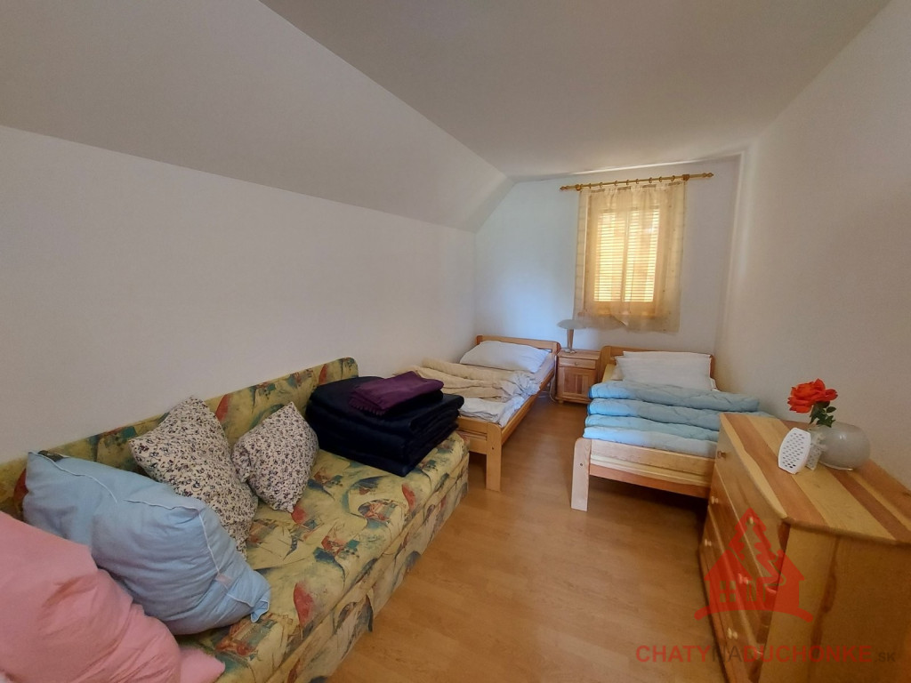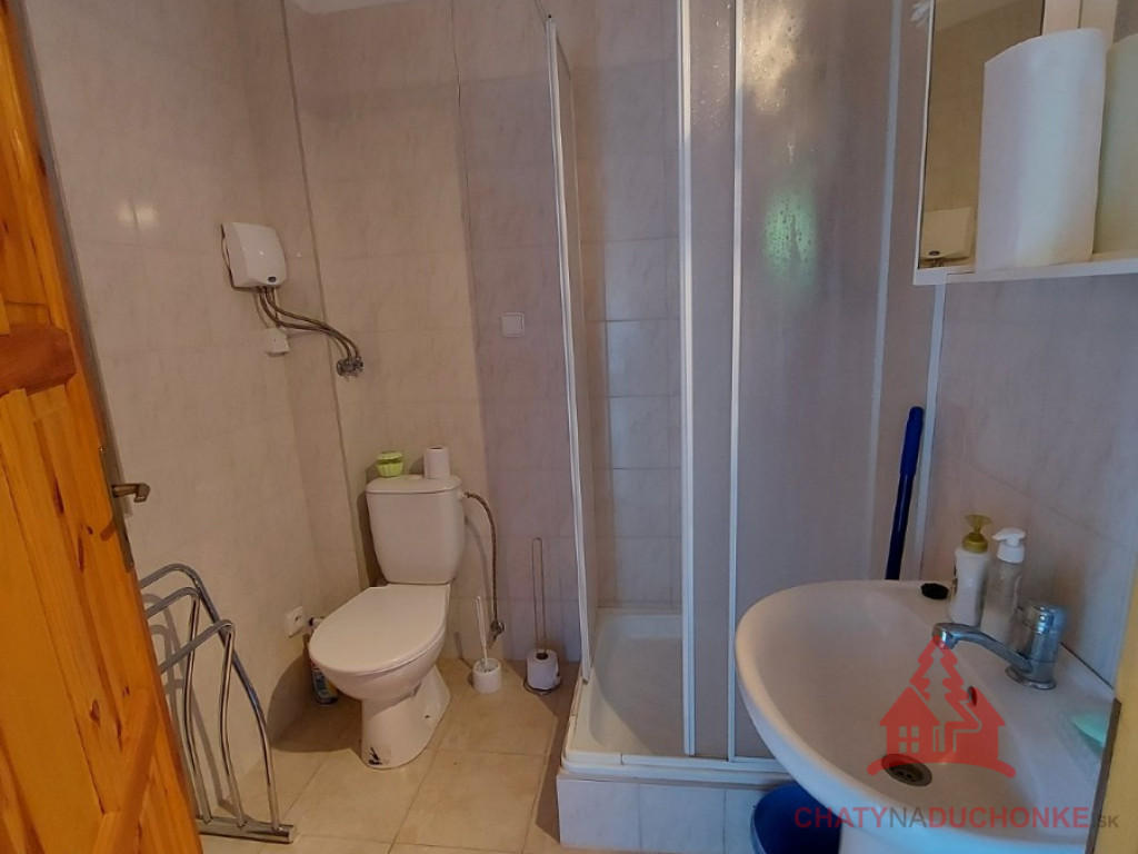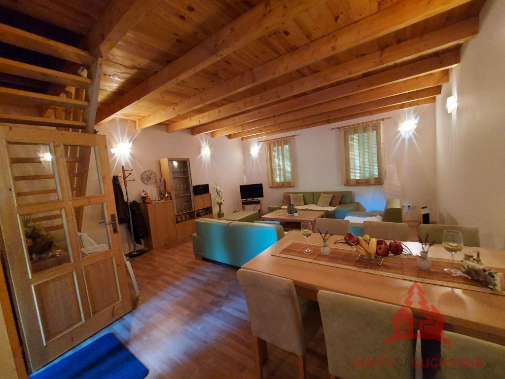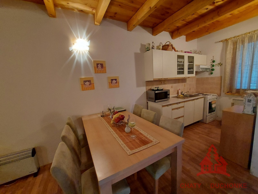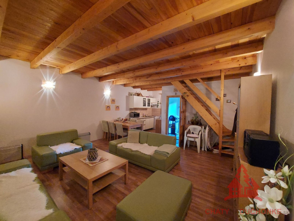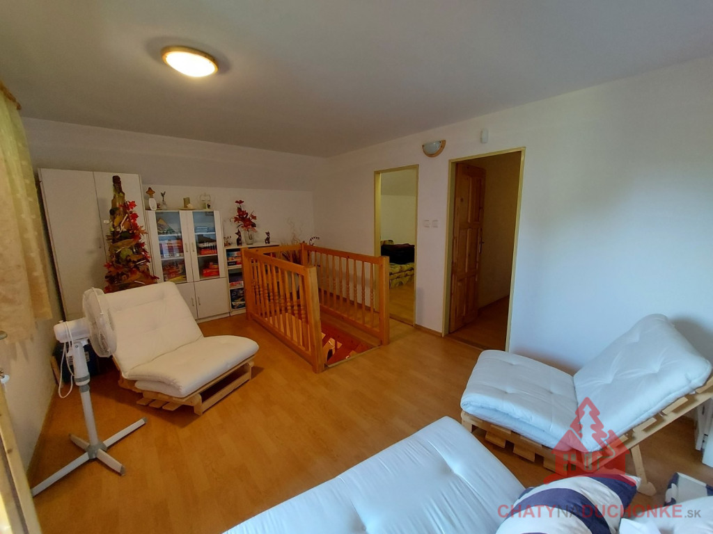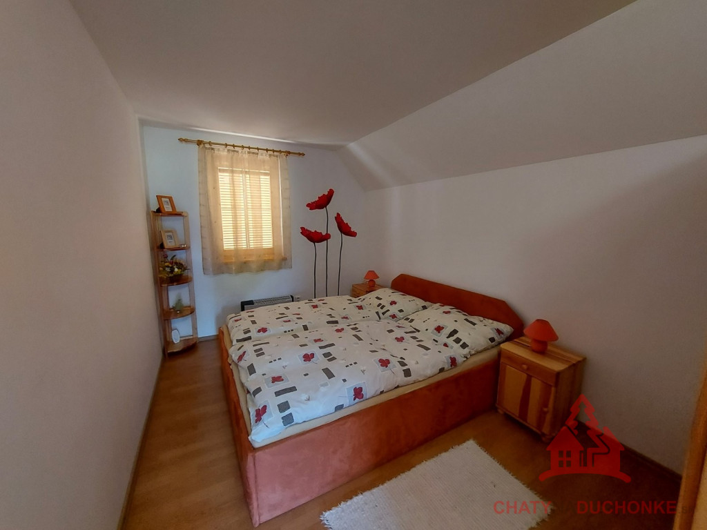 V rekreačnej oblasti DUCHONKA ponúkame na predaj parádne peknú slnečnú zariadenú chatu – novostavbu, postavenú v roku 2012. Chata je 2 - podlažná a v prízemnej časti je 1 – izba (spoločenská miestnosť), ktorá je príjemne spojená s kuchyňou. V tejto prízemnej časti chaty je kúpeľňa s wc. Na 1. poschodí sú 2 priestranné izby, v ktorých je spolu 5 postelí + 3 prístelky. Stavba je napojená na verejný rozvod elektrickej siete, má vlastnú studňu a ohrev vody zabezpečuje elektrický prietokový ohrievač vody. Odpad je zvedený do žumpy. Nehnuteľnosť je montovaná drevostavba zateplená polystyrénom. Strešná krytina je Blachotrapez. Chata má krásne drevené podhľady. Z bezpečnostných prvkov má chata kamerový systém, alarm. Na streche je satelit a pohoda ako vyšitá, už len nohy vyložiť, na terase naštartovať gril a niečo dobré si upiecť. Nehnuteľnosť sa predáva komplet zariadená a s vybavením ako je na foto. Pozemok okolo chaty je veľmi pekný. Z chaty sa ťahá predĺžená strecha, ktorá slúži ako prístrešok pre auto. Zastavaná plocha chaty je 54 m2, obytná plocha 80 m2, úžitková plocha je cca 120 m2 a výmera pozemku 548 m2. Pozemok je vysporiadaný. Vrelo odporúčam, krásne prostredie, ešte krajšia chata, tichá lokalita a predajom je chata ihneď k dispozícii. V cene je zahrnutý - kompletný právny servis - vypracovanie Kúpnych, nájomných a iných typov zmlúv - právne poradenstvo - popredajný servis / zmeny u dodávateľov elektriky, plynu a vody/ a samozrejme bezplatné poradenstvo pri vybavovaní hypoúveru. Sme členom NARKS. Obhliadku dohodne: Boris HANKO, tel. 0915 702 177. ---------- Virtuálna obhliadka: https://tour.panoee.com/chata-9/644e28d1e9af9aa525011439