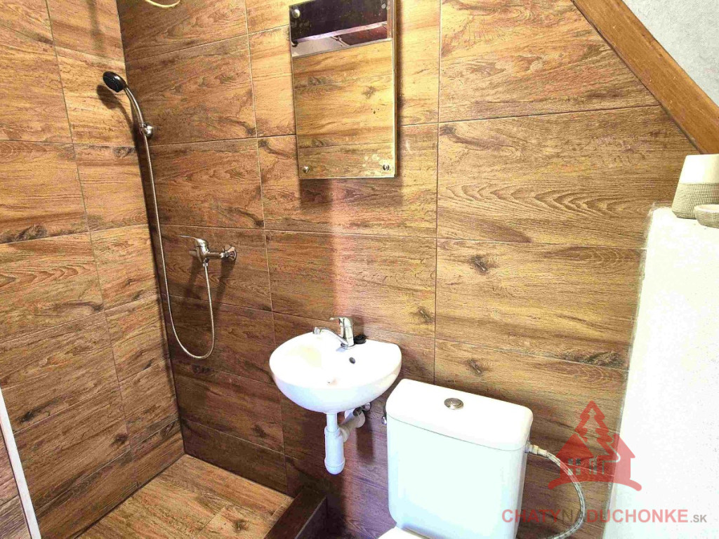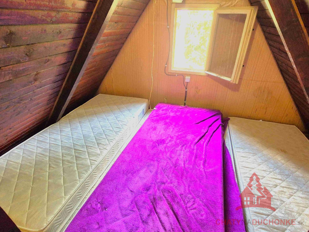 Pár minút od vodnej nádrže DUCHONKA ponúkame na predaj útulnú chatu, ktorá je situovaná vo veľmi tichej lokalite. Pred chatou je otvorená terasa a za chatou prestrešená terasa, za ktorou je posedenie pri ohnisku. Do chaty je vstup cez terasu, na ktorej je v lete veľmi príjemné posedenie. Po otvorení vstupných dverí sa ocitneme na chodbe, z ktorej sa ide do kuchyne a do kúpeľne s wc. Ďalej sa dostaneme do obývačky, kde sa nachádza východ na terasu č.2 a v obývačke sú aj schodíky do podkrovia, kde sú ďalšie obytné priestory. V obývačke je aj krb, ktorý je hlavným zdrojom tepla v zimnom období. Chata prešla čiastočnou rekonštrukciou, ktorá zahrnula modernizáciu kúpeľne a kuchyne. Ostatné časti chaty sú v pôvodnom stave. Základy chaty sú murované, zvyšná časť je drevená konštrukcia. Strecha je plechová. V chate je zavedená elektrika, vodovod a odpad je zvedený do žumpy. Ohrev vody zabezpečuje elektrický bojler. Vybavenie chaty, ako ho vidíte na foto, zostáva v chate. Zastavaná plocha chaty je 56 m2, úžitková plocha je cca 70 m2 a celková výmera pozemku je 431 m2. Vrelo odporúčam, krásne prostredie, super chata, tichá lokalita a predajom je chata ihneď k dispozícii. Mám kľúč od chaty.