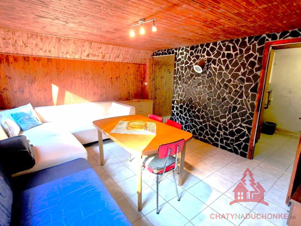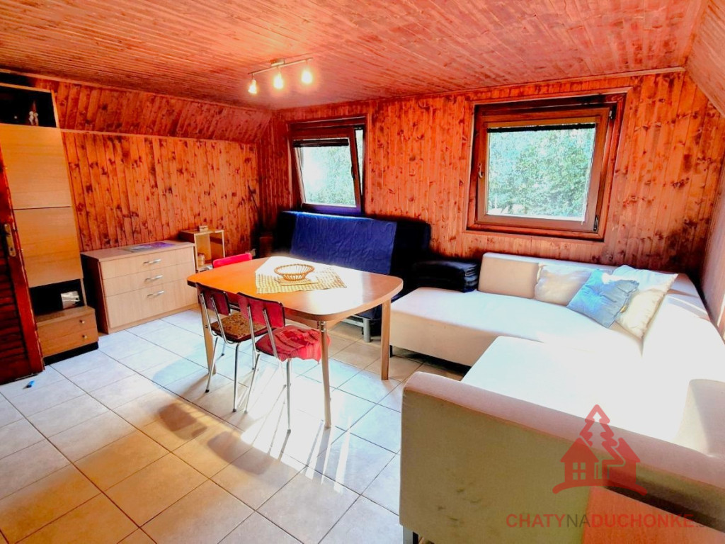 Miesto, kde si oddýchneš, spomalíš a užiješ si prírodu naplno. V krásnej rekreačnej oblasti Duchonka sa doteraz ukrývala táto príjemná chata, ktorá je aktuálne na predaj. Chata je situovaná v pokojnom prírodnom prostredí, kde máš dostatok súkromia, no zároveň si len pár minút pohodovej chôdze od vody. A úprimne – ani ti nebude chýbať, keď si večer sadneš ku krbu a budeš sa dívať do ohňa. Dispozícia chaty: Prízemie: kuchyňa prepojená s obývačkou kúpeľňa s WC vstupná hala, ktorá slúži ako ďalšia izba Poschodie: 2× spálňa Exteriér a okolie: altánok ideálny na posedenia a grilovanie parkovanie pri chate príjemné a pokojné prostredie Technické informácie: Chata prešla rekonštrukciou v priebehu posledných rokov. Ohrev vody zabezpečuje elektrický zásobníkový ohrievač (bojler). Strecha má novú plechovú krytinu a novo vybudovaný komín. Použitý stavebný materiál je drevo – zateplená chata. Napojenie: verejný rozvod elektriny verejný vodovod odpad riešený žumpou Výmerové údaje: zastavaná plocha: 51 m² úžitková plocha: 100 m² obytná plocha: 80 m² výmera pozemku: 400 m² Záver: Krásne prostredie, veľmi príjemná chata a výborná lokalita. Vhodná na vlastný oddych aj ako investícia na prenájom. Obhliadku dohodne: Boris HANKO, tel. 0915 702 177