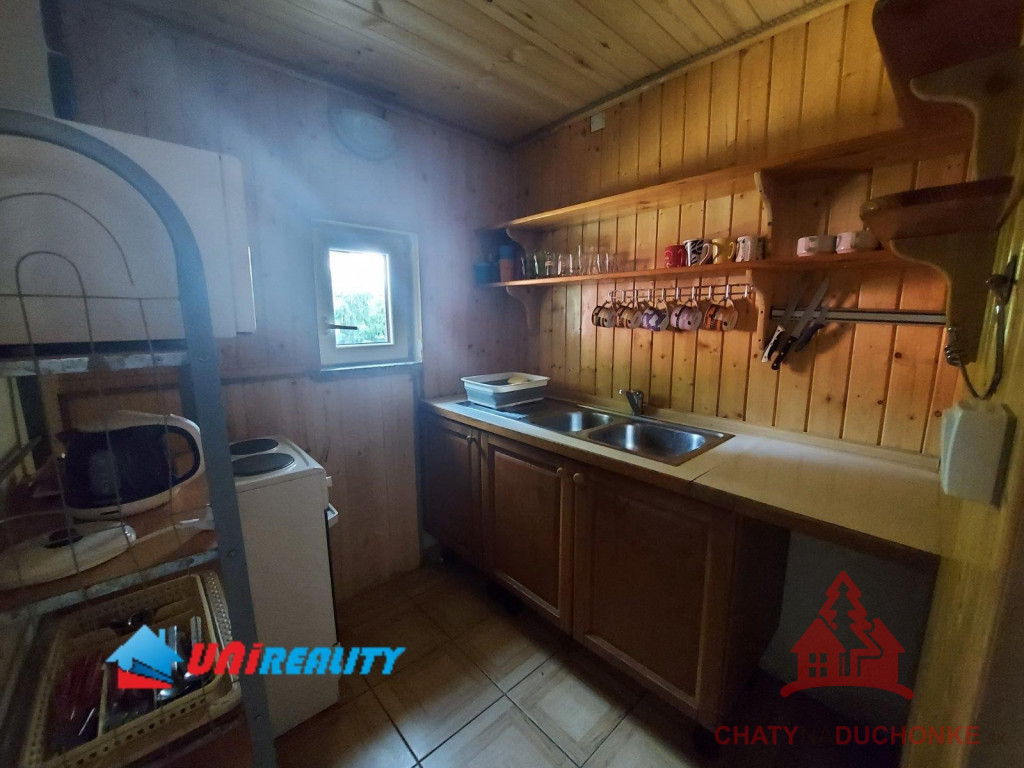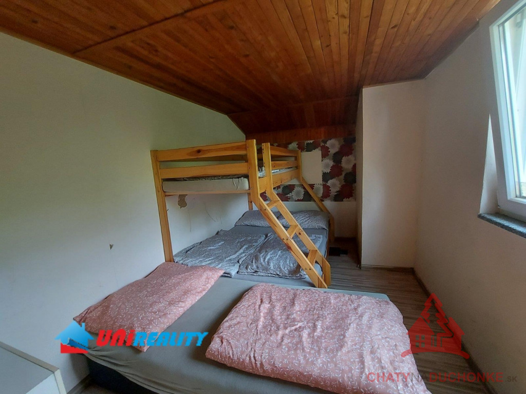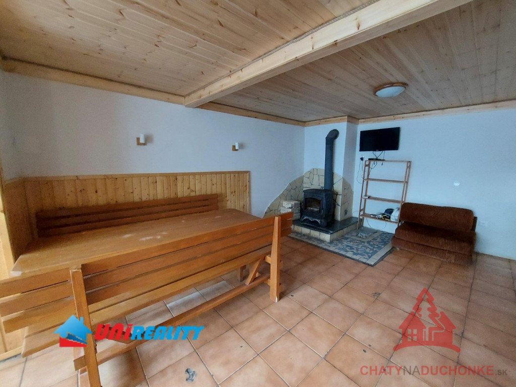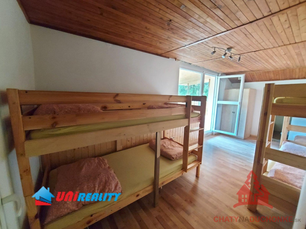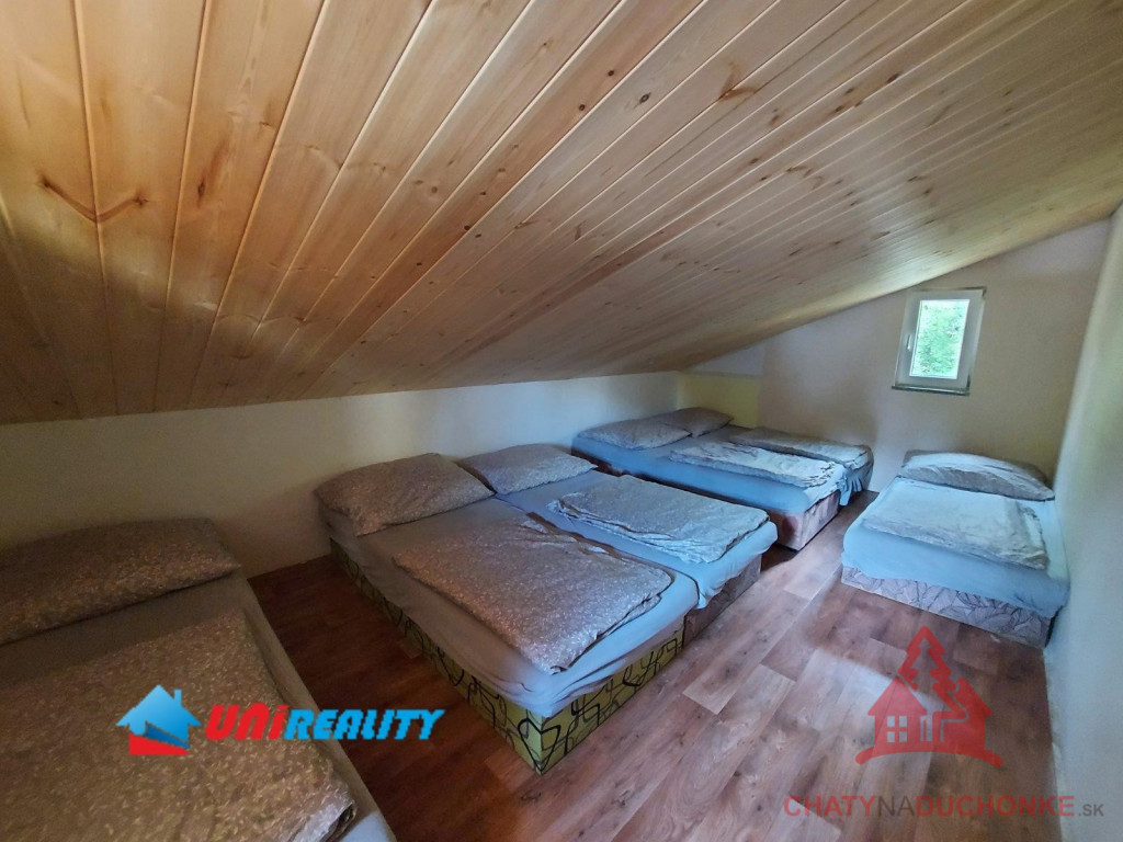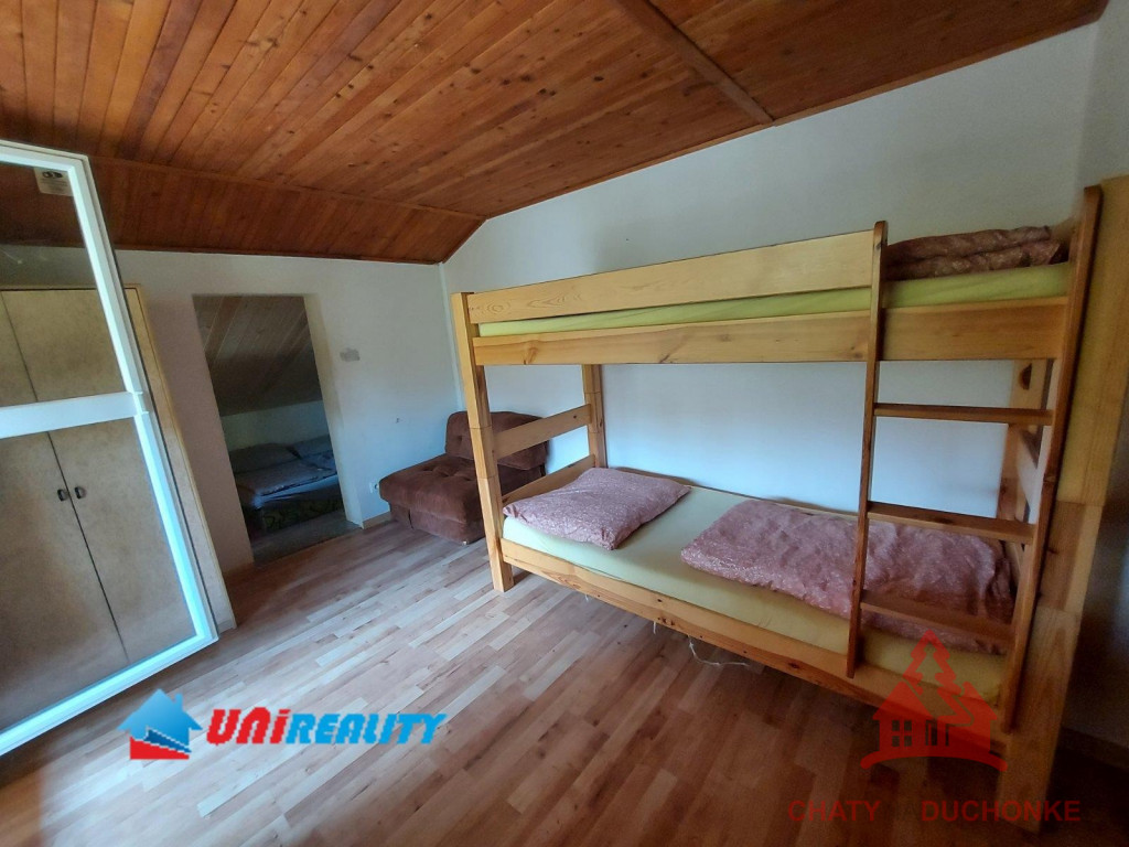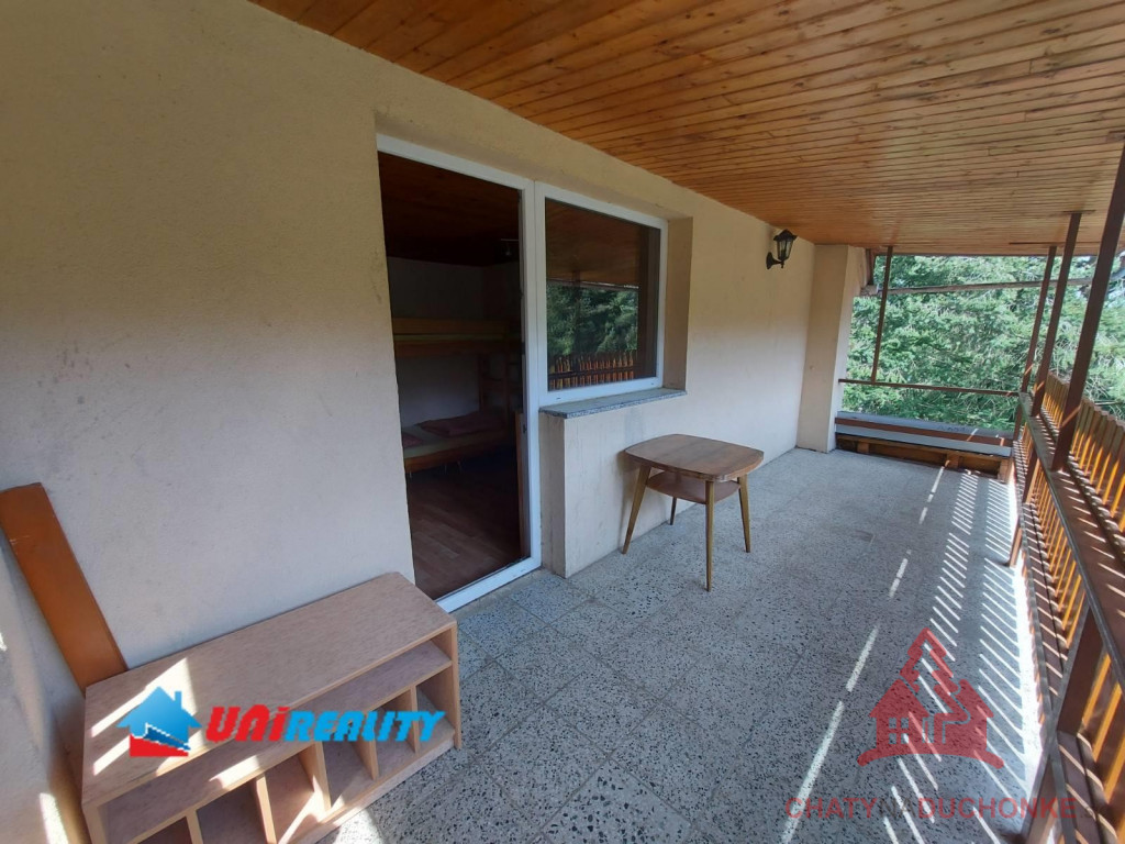 V rekreačnej oblasti Duchonka asi 6 min. od vodnej nádrže je v ponuke na predaj pekná murovaná celoročne obývateľná chata. Vzdušnou čiarou je od vodnej nádrže vzdialená ani nie 250 m. Je situovaná v tichom a peknom prostredí. Chata má 4 izby, kuchyňu, kúpeľňu s wc a vonku prestrešený altánok s ohniskom, 2 terasy a garáž. Je vykurovaná lokálnym kúrením na tuhé palivo. Ohrev vody zabezpečuje elektrický zásobníkový ohrievač vody. V kuchyni je k dispozícií sporák, mikrovlnka a chladnička a v obývačke TV so satelitom a plus iné bežné veci patriace do domácnosti. Nehnuteľnosť prešla pred 4 rokmi rekonštrukciou, ktorá zahrnula (plastové okná, zateplenie chaty, nová kuchynská linka, nová kúpeľňa, nová žumpa o objeme 16 m3 a pod.) V prízemnej časti je priestranná obývačka, kuchyňa, kúpeľňa s wc a schodisko do prvého poschodia. Na poschodí sú 3 izby. Celkový počet postelí spolu s prístelkami je 18 lôžok. Chata bola postavená v 80-tych rokoch. Strecha je plechová sedlového typu. Použitý stavebný materiál tehla a kváder. Je napojená na verejný rozvod elektriky, vody a odpad je riešený vo forme žumpy. Zastavaná plocha chaty je 65 m2, úžitková plocha je 130 m2, obytná plocha 100 m2 a pozemok má výmeru 334m2. Vrelo odporúčam, krásne prostredie, tichá lokalita a predajom je chata ihneď k dispozícii. Kľúč od chaty mám k dispozícii. V cene je zahrnutý - kompletný právny servis - vypracovanie Kúpnych, nájomných a iných typov zmlúv - právne poradenstvo - popredajný servis / zmeny u dodávateľov elektriky, plynu a vody/ a samozrejme bezplatné poradenstvo pri vybavovaní hypoúveru. Sme členom NARKS. Obhliadku dohodne: Boris HANKO, tel. 0915 702 177