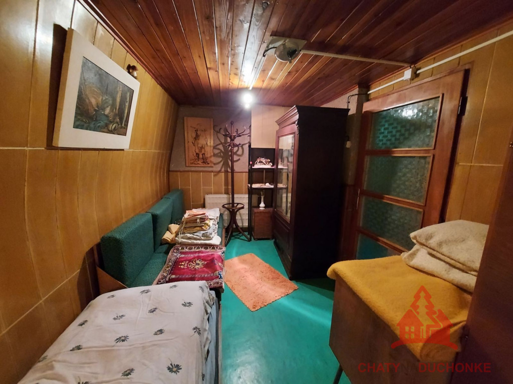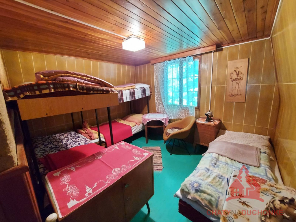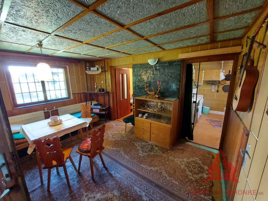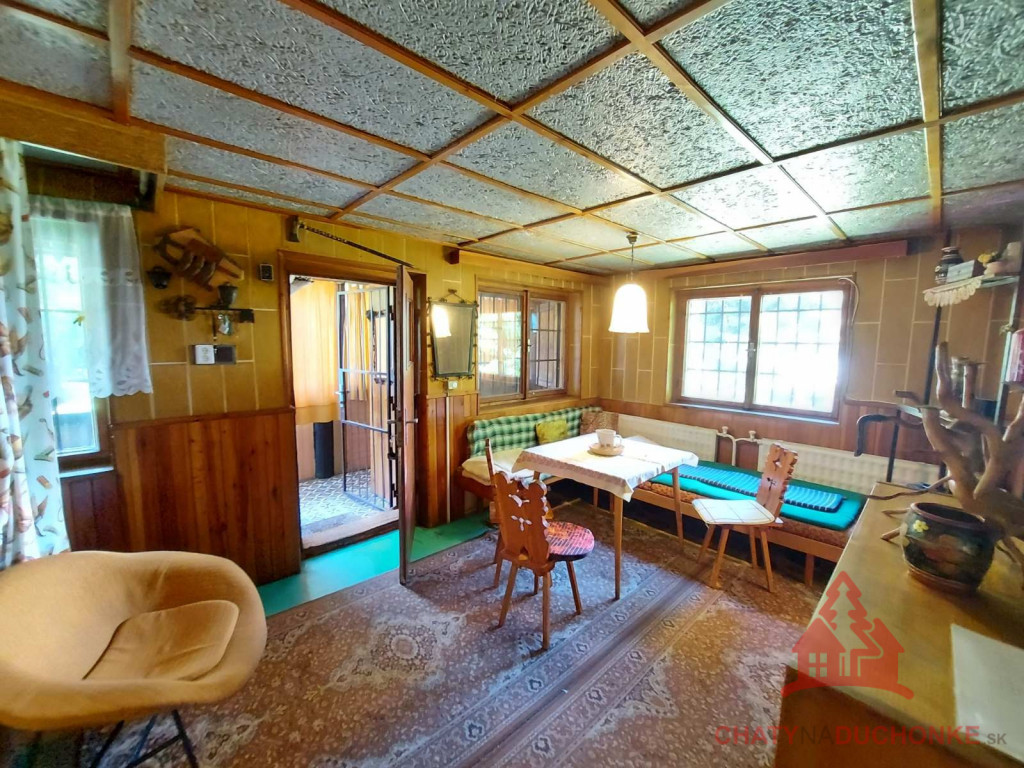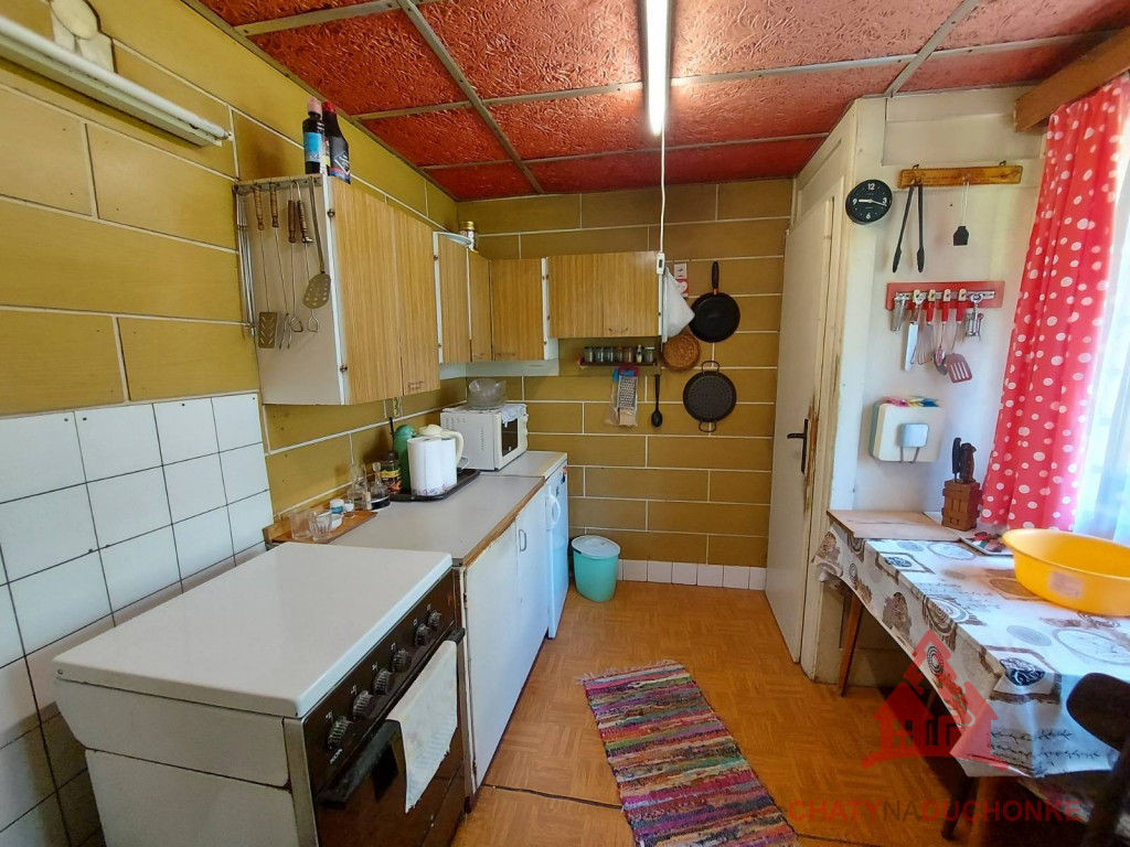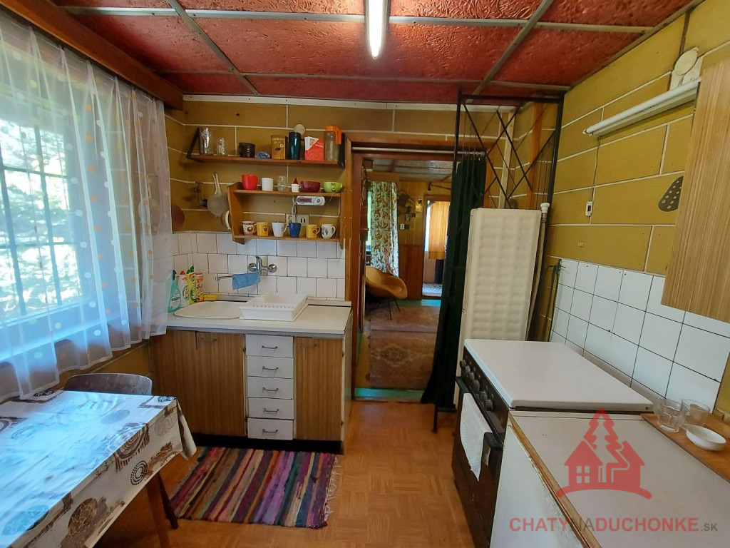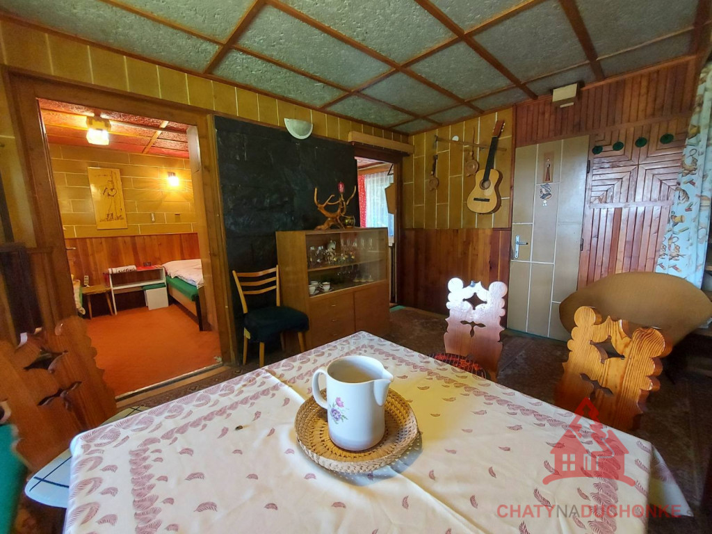 Blízko vody v rekreačnej oblasti DUCHONKA je na predaj pekná chata situovaná pod lesom. Vzdušnou čiarou je od vodnej nádrže vzdialená ani nie 100 m. Chata má 4 izby, kuchyňu, kúpeľňu s wc a vonku prestrešenú terasu. V suteréne je garáž, pivnica a kotolňa s kotlom ústredného kúrenia na drevo. Ohrev vody zabezpečuje elektrický zásobníkový ohrievač vody. Tieto priestory sú ideálne okrem parkovacieho miesta aj na odkladanie vecí, náradia a pod (vonkajšie sedenie, gril, kotlík, bike, a pod.). V prízemnej obytnej časti chaty sa cez terasu dostaneme do obývačky, z ktorej sa ide do kuchyne, izby (2 postele), wc s kúpelňou a schodmi do podkrovia chaty. V podkrovnej časti chaty je balkón a sú tu 2 izby s celkovým počtom 7 (5 + 2) postelí. Strecha chaty je plechová, stavba murovaná obložená drevom. Chata je napojená na verejný rozvod elektriky, vody a odpad je riešený vo forme žumpy. Prístupová cesta je štrková. Chata bola postavená v 80-tych rokoch. Zastavaná plocha chaty je 65 m2, úžitková plocha je 150 m2, obytná plocha 100 m2 a pozemok má výmeru 387m2. Vrelo odporúčam, krásne prostredie, tichá lokalita a predajom je chata ihneď k dispozícii. Kľúč od chaty mám. V cene je zahrnutý - kompletný právny servis - vypracovanie Kúpnych, nájomných a iných typov zmlúv - právne poradenstvo - popredajný servis / zmeny u dodávateľov elektriky, plynu a vody/ a samozrejme bezplatné poradenstvo pri vybavovaní hypoúveru. Sme členom NARKS. Obhliadku dohodne: Boris HANKO, tel. 0915 702 177