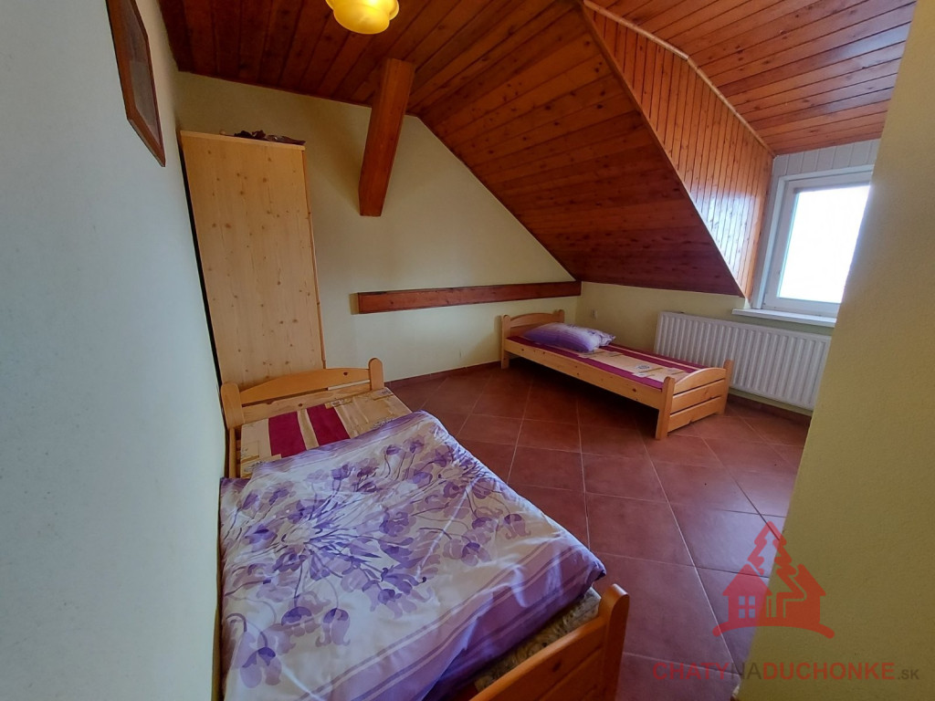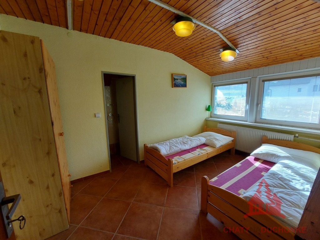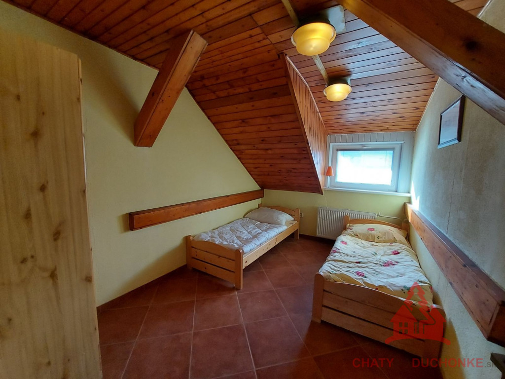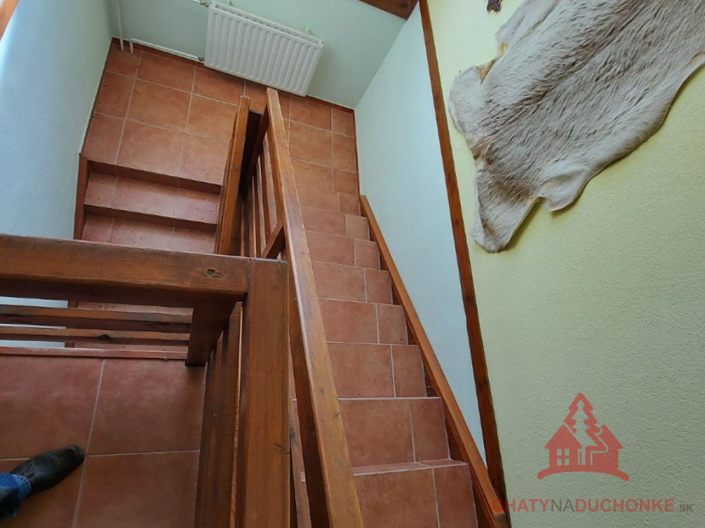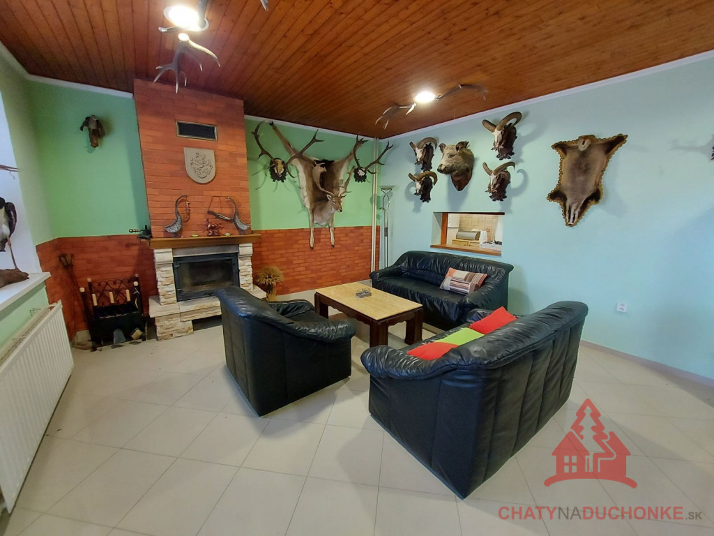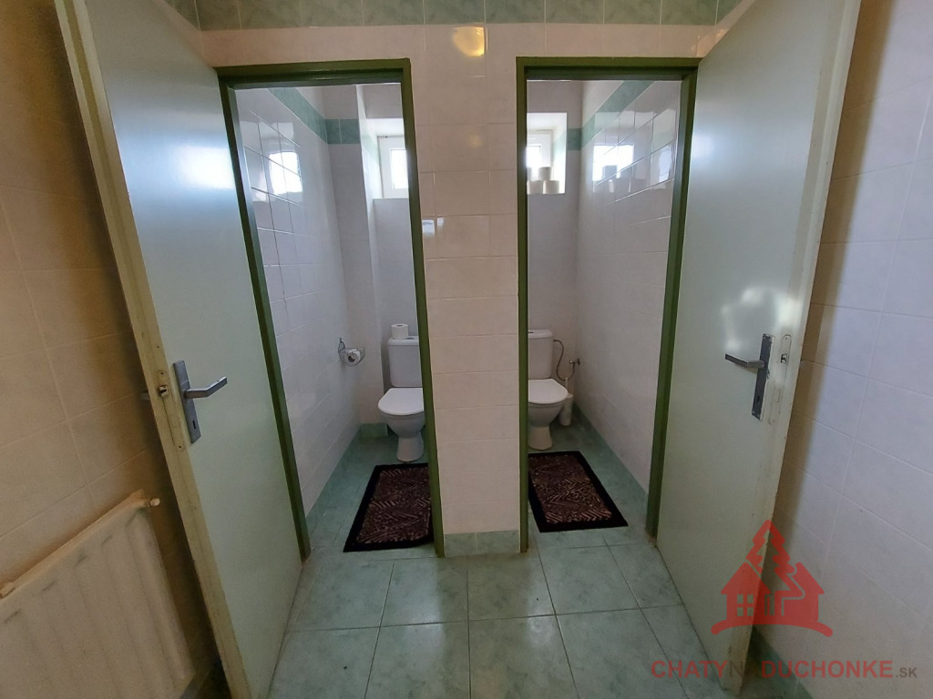 Pár kilometrov od rekreačnej oblasti DUCHONKA (okres TOPOĽČANY) ponúkame na predaj pekný PENZIÓN, ktorý je situovaný kúsok pod Topoľčianskym hradom s nádherným výhľadom na okolie. V prízemnej časti sú 4 izby čiže veľká spoločenská miestnosť s barom a krbom a tiež východom na terasu. Ďalej apartmán (obývačka + spálňa s wc a sprchou), a potom len izba s wc a sprchou. V prízemnej časti nájdeme aj kuchyňu s plným zariadením. Na poschodí je 8 izieb z toho 3 s wc a sprchou, 2 len s wc a 3 bez príslušenstva (viď foto a pôdorys). Sumár informácií: 12 izieb 18 postelí + prístelky komplet rekonštrukcia ihneď voľné nové ústredné plynové kúrenie vodovod áno odpad žumpa plyn áno alarm áno pozemok 1118 m2 úžitková plocha 400 m2 podivničené z 1/4 k nehnuteľnosti prislúchajú 2 garáže plastové okná zateplené 230/380 V Podotýka sa, že poľovnícke trofeje NIE sú predmetom predaja, ako aj kožená sedačka (čierna a zelená) a tiež jedálenský komplet. Zvyšný nábytok ako postele a skrine v izbách sú súčasťou kúpnej ceny. Vrelo odporúčam, krásne prostredie, tichá lokalita a predajom je chata ihneď k dispozícii. Možnosť financovania úverom: ÁNO. V cene je zahrnutý kompletný právny servis, vypracovanie návrhu na vklad do katastra nehnuteľností a poradenstvo v oblasti hypotekárneho financovania a poistenia. Obhliadku dohodne: Boris HANKO, tel. 0915 702 177 Viac na CHATY na DUCHONKE sk