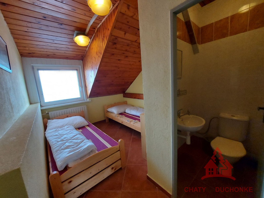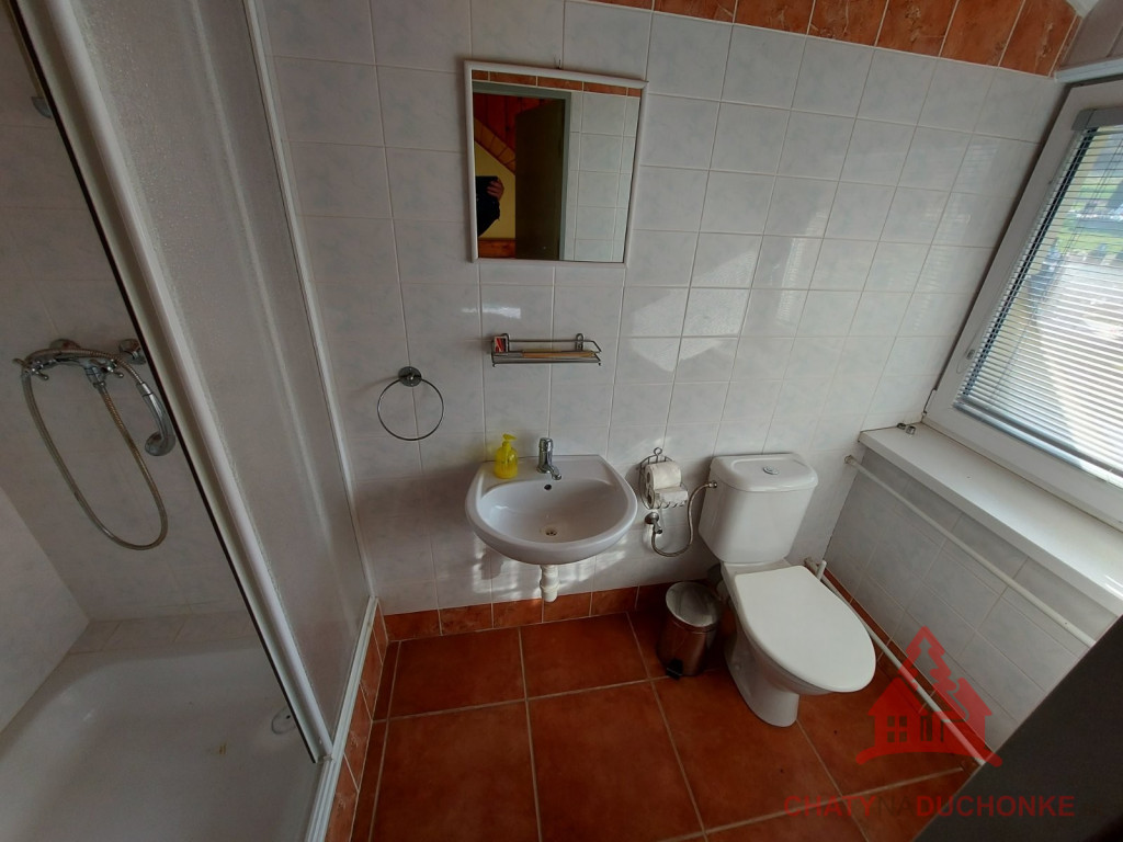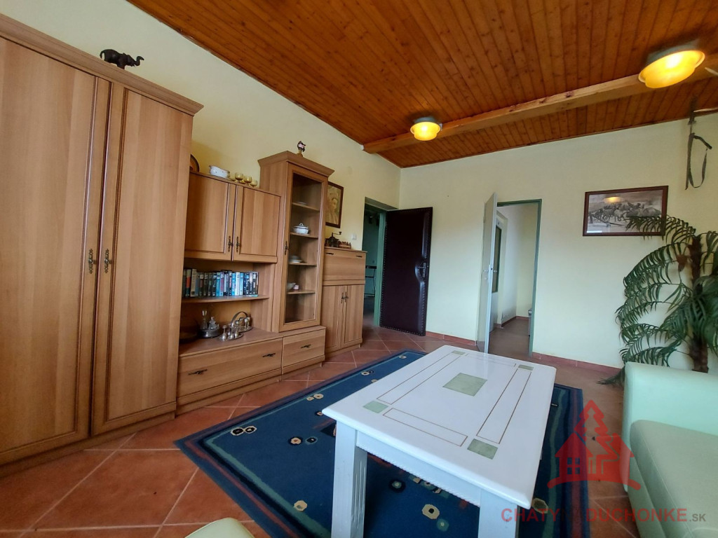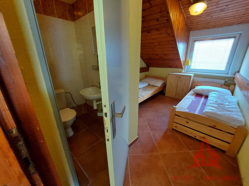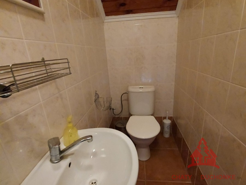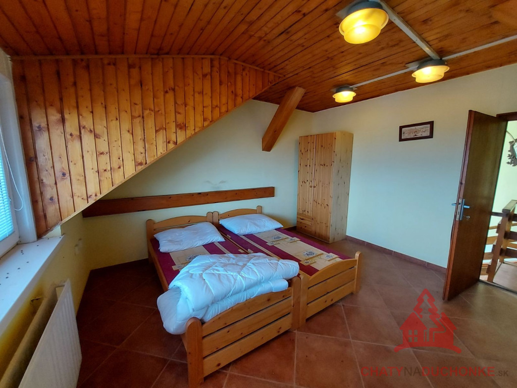 Pár kilometrov od rekreačnej oblasti DUCHONKA (okres TOPOĽČANY) ponúkame na predaj pekný PENZIÓN, ktorý je situovaný kúsok pod Topoľčianskym hradom s nádherným výhľadom na okolie. V prízemnej časti sú 4 izby čiže veľká spoločenská miestnosť s barom a krbom a tiež východom na terasu. Ďalej apartmán (obývačka + spálňa s wc a sprchou), a potom len izba s wc a sprchou. V prízemnej časti nájdeme aj kuchyňu s plným zariadením. Na poschodí je 8 izieb z toho 3 s wc a sprchou, 2 len s wc a 3 bez príslušenstva (viď foto a pôdorys). Sumár informácií: 12 izieb 18 postelí + prístelky komplet rekonštrukcia ihneď voľné nové ústredné plynové kúrenie vodovod áno odpad žumpa plyn áno alarm áno pozemok 1118 m2 úžitková plocha 400 m2 podivničené z 1/4 k nehnuteľnosti prislúchajú 2 garáže plastové okná zateplené 230/380 V Podotýka sa, že poľovnícke trofeje NIE sú predmetom predaja, ako aj kožená sedačka (čierna a zelená) a tiež jedálenský komplet. Zvyšný nábytok ako postele a skrine v izbách sú súčasťou kúpnej ceny. Vrelo odporúčam, krásne prostredie, tichá lokalita a predajom je chata ihneď k dispozícii. Možnosť financovania úverom: ÁNO. V cene je zahrnutý kompletný právny servis, vypracovanie návrhu na vklad do katastra nehnuteľností a poradenstvo v oblasti hypotekárneho financovania a poistenia. Obhliadku dohodne: Boris HANKO, tel. 0915 702 177 Viac na CHATY na DUCHONKE sk