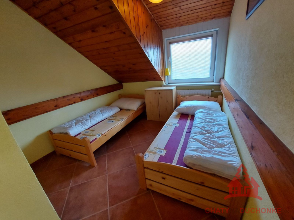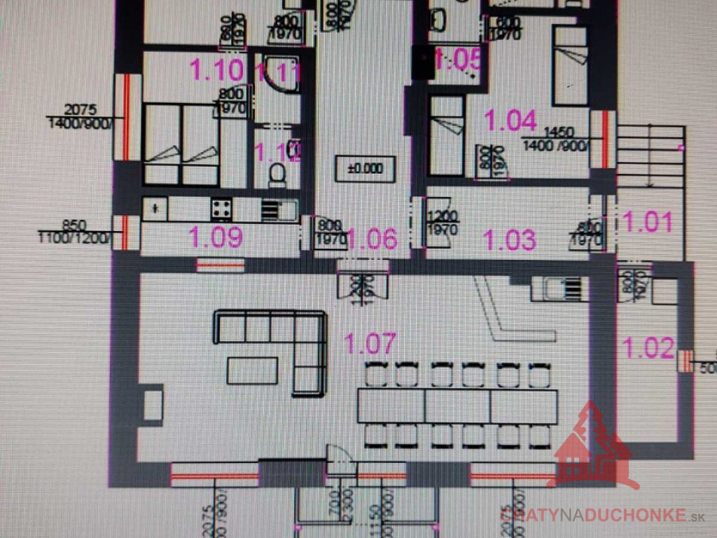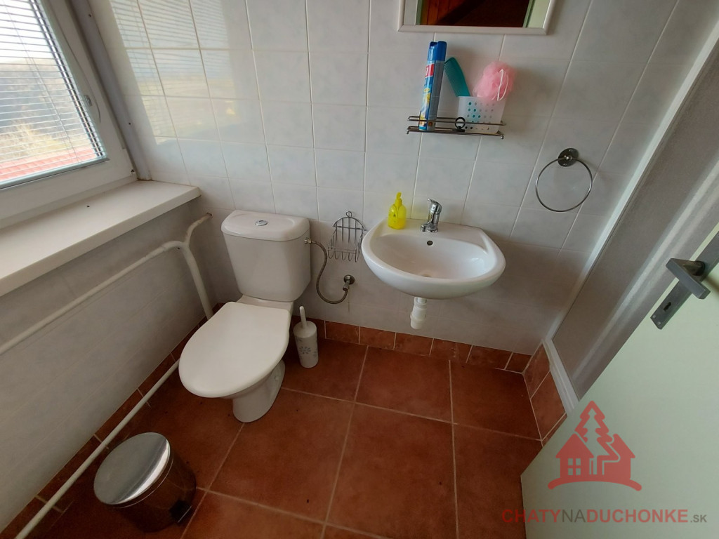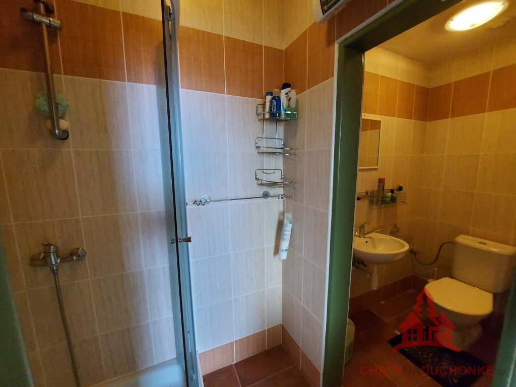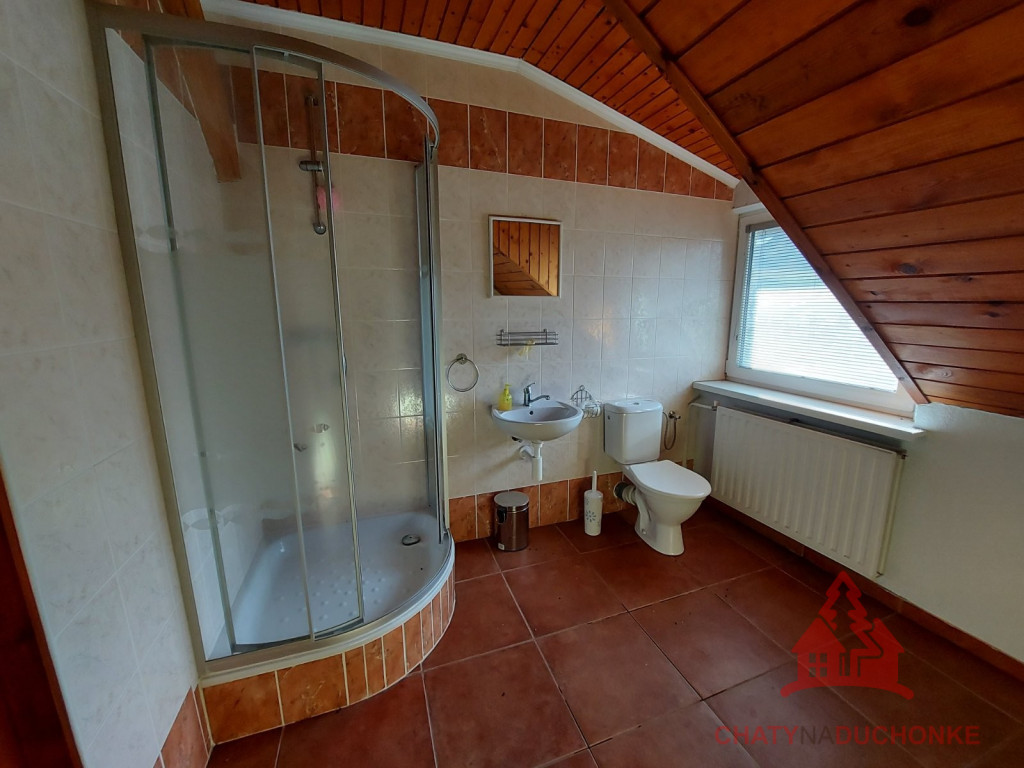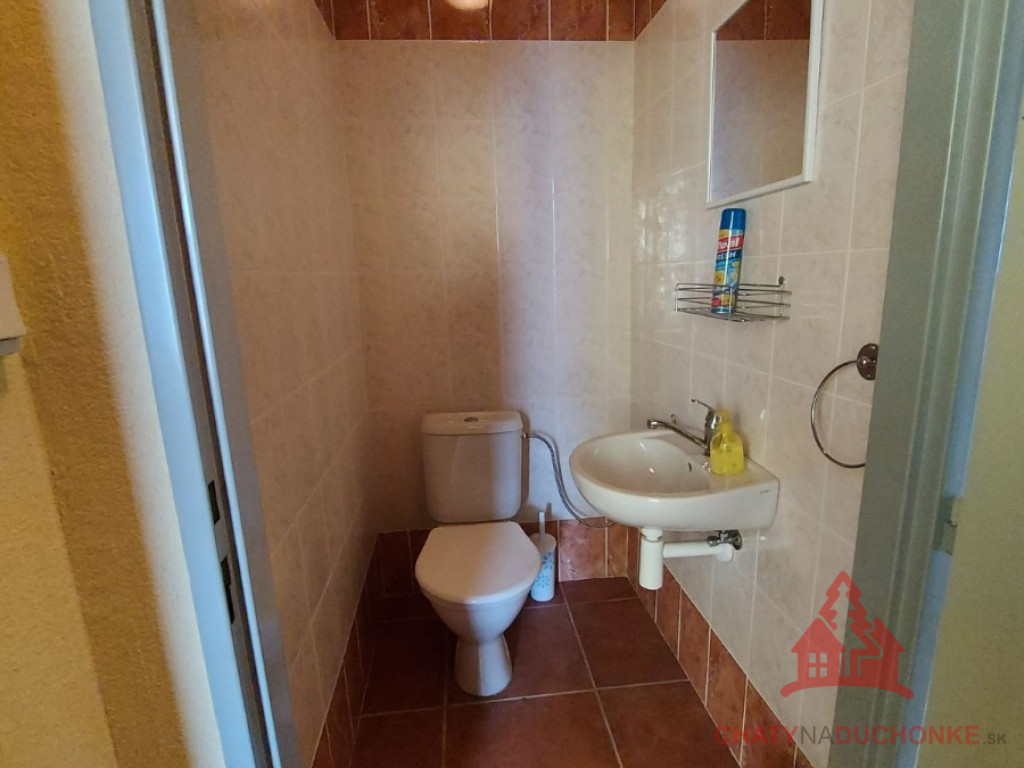 Pár kilometrov od rekreačnej oblasti DUCHONKA (okres TOPOĽČANY) ponúkame na predaj pekný PENZIÓN, ktorý je situovaný kúsok pod Topoľčianskym hradom s nádherným výhľadom na okolie. V prízemnej časti sú 4 izby čiže veľká spoločenská miestnosť s barom a krbom a tiež východom na terasu. Ďalej apartmán (obývačka + spálňa s wc a sprchou), a potom len izba s wc a sprchou. V prízemnej časti nájdeme aj kuchyňu s plným zariadením. Na poschodí je 8 izieb z toho 3 s wc a sprchou, 2 len s wc a 3 bez príslušenstva (viď foto a pôdorys). Sumár informácií: 12 izieb 18 postelí + prístelky komplet rekonštrukcia ihneď voľné nové ústredné plynové kúrenie vodovod áno odpad žumpa plyn áno alarm áno pozemok 1118 m2 úžitková plocha 400 m2 podivničené z 1/4 k nehnuteľnosti prislúchajú 2 garáže plastové okná zateplené 230/380 V Podotýka sa, že poľovnícke trofeje NIE sú predmetom predaja, ako aj kožená sedačka (čierna a zelená) a tiež jedálenský komplet. Zvyšný nábytok ako postele a skrine v izbách sú súčasťou kúpnej ceny. Vrelo odporúčam, krásne prostredie, tichá lokalita a predajom je chata ihneď k dispozícii. Možnosť financovania úverom: ÁNO. V cene je zahrnutý kompletný právny servis, vypracovanie návrhu na vklad do katastra nehnuteľností a poradenstvo v oblasti hypotekárneho financovania a poistenia. Obhliadku dohodne: Boris HANKO, tel. 0915 702 177 Viac na CHATY na DUCHONKE sk